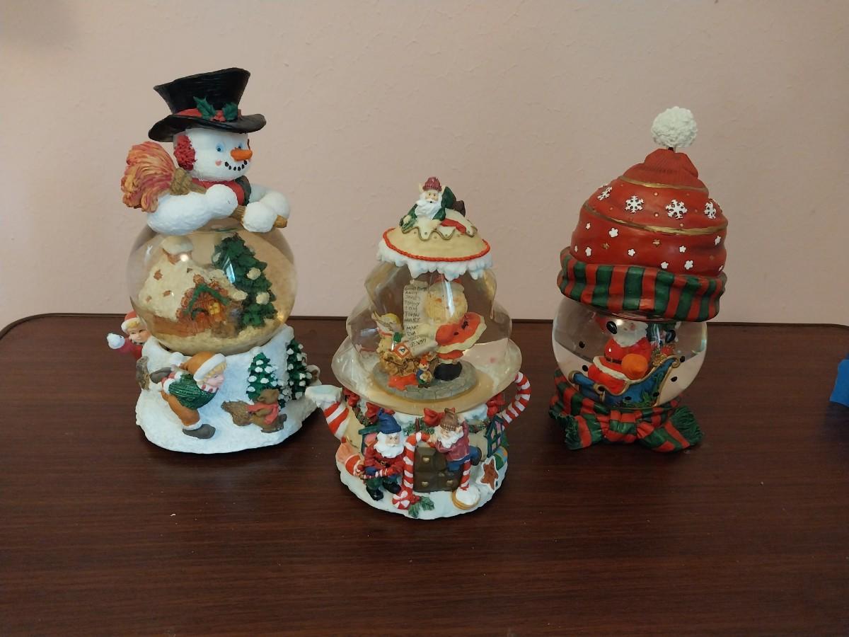 3 CHRISTMAS SNOW GLOBES, 1 MUSICAL