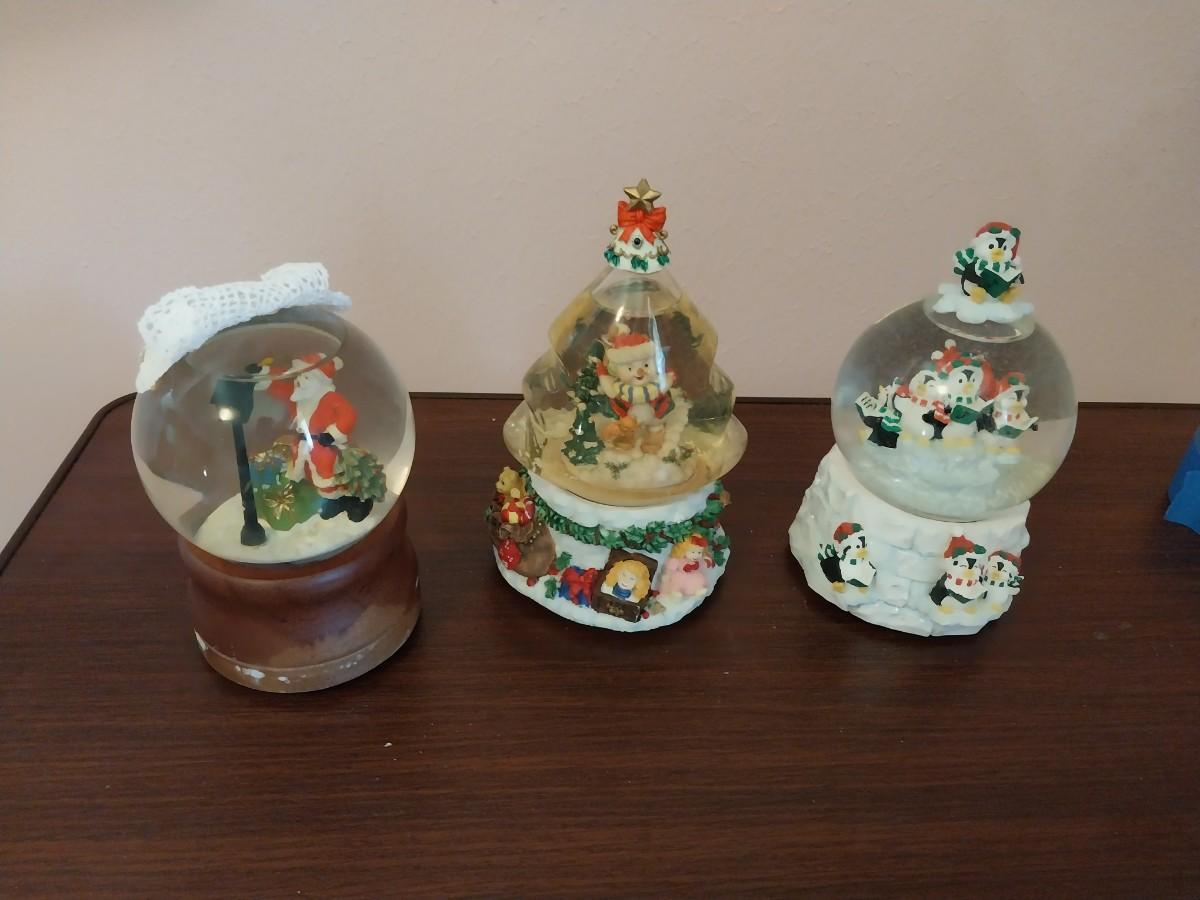 3 CHRISTMAS SNOW GLOBES, 2 MUSICAL