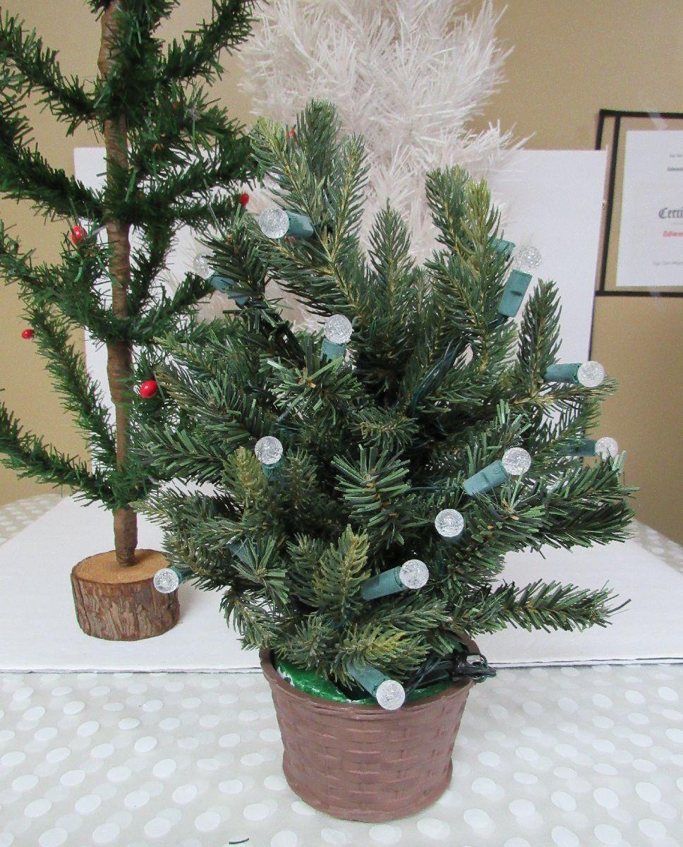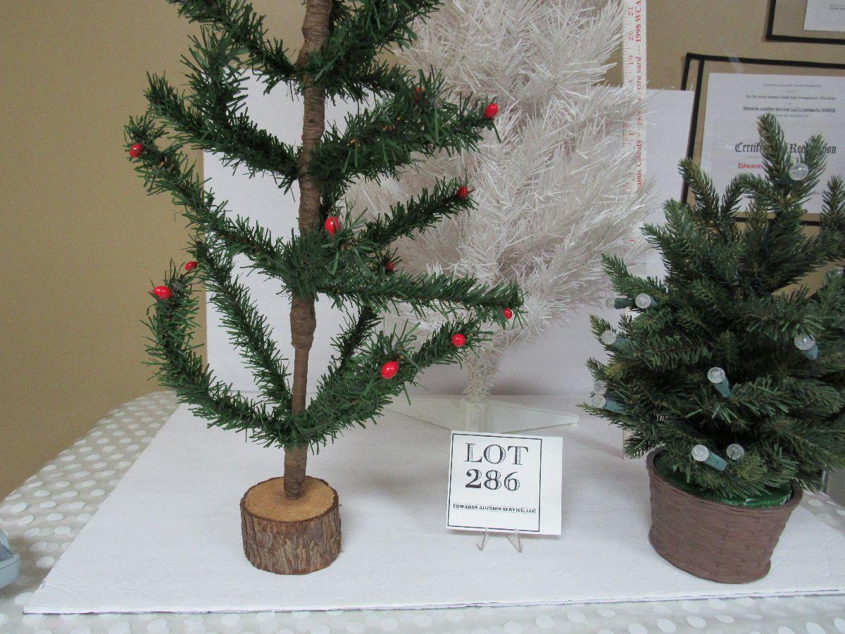 Average used condition. I think the batteries need changing on the one tree. Cute little round lights on it. Too bid to ship.