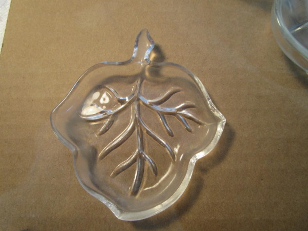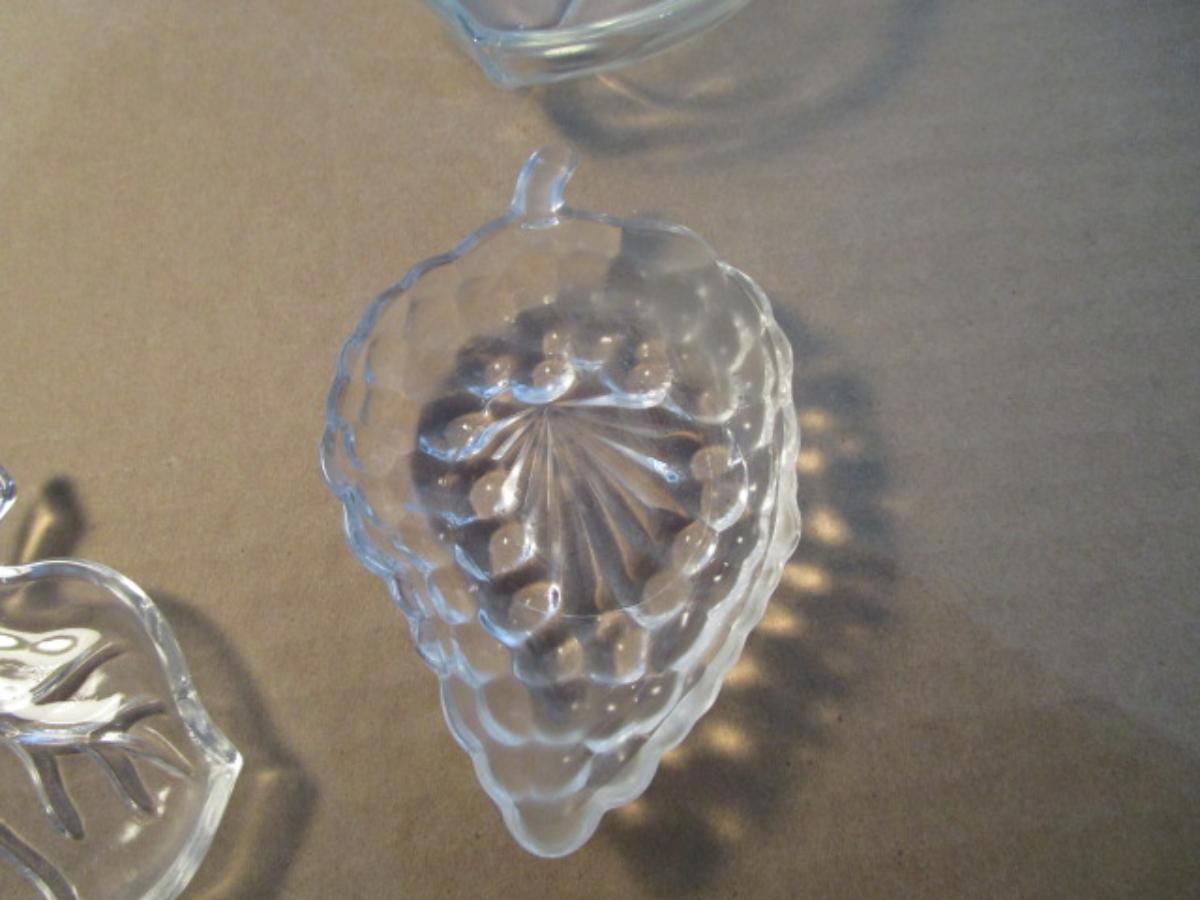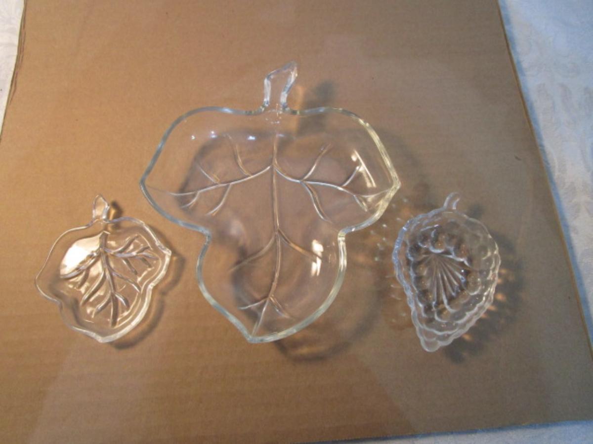 3 clear glass leaf dishes, 1 large & 2 small