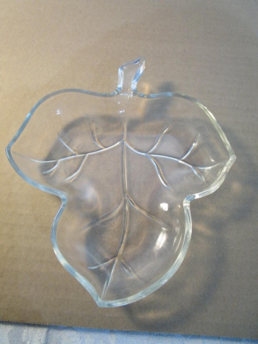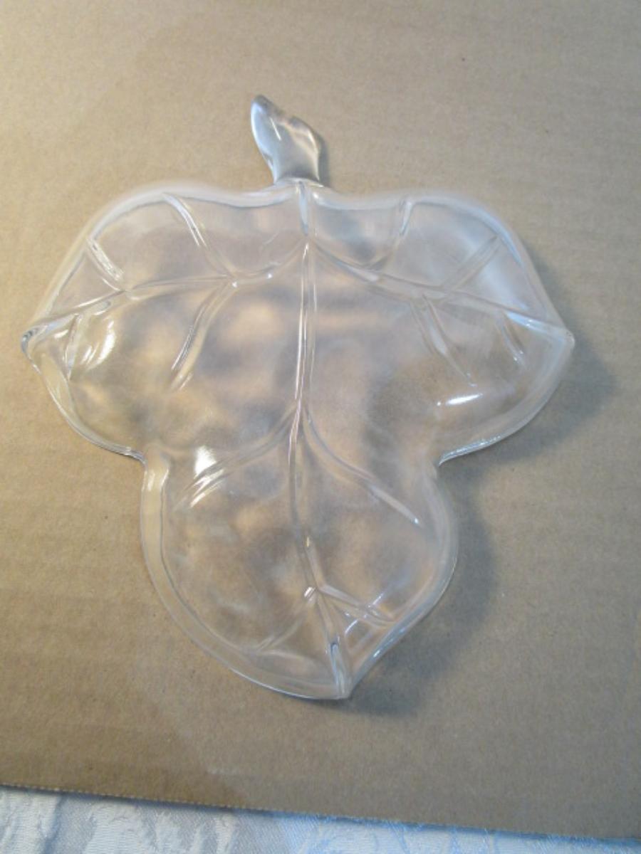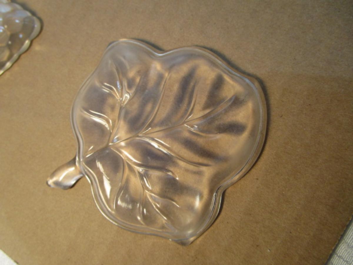 3 clear glass leaf dishes, 1 large & 2 small