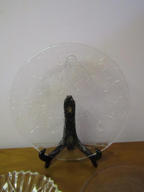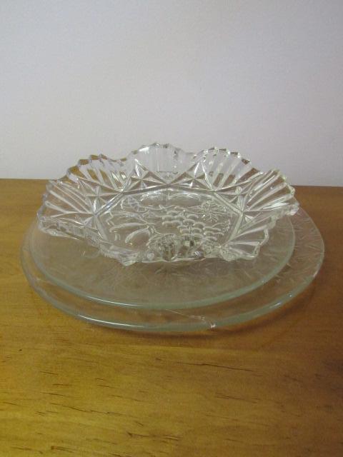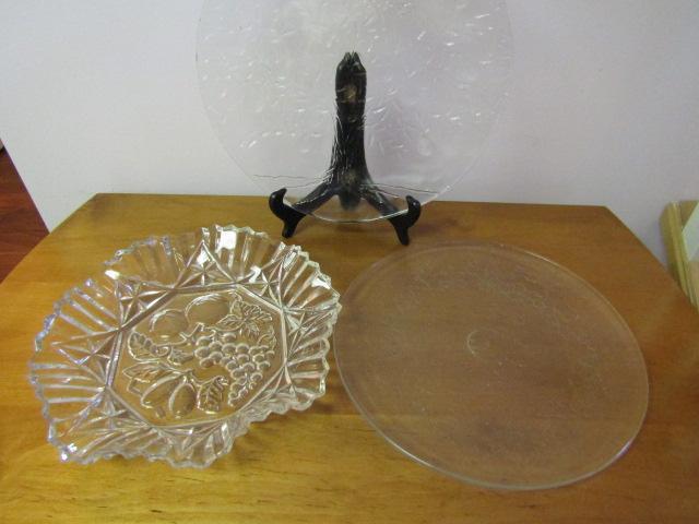 3 Clear Glass Serving Pieces.  2 Plates, 1 Bowl