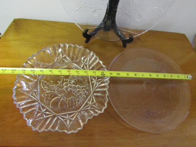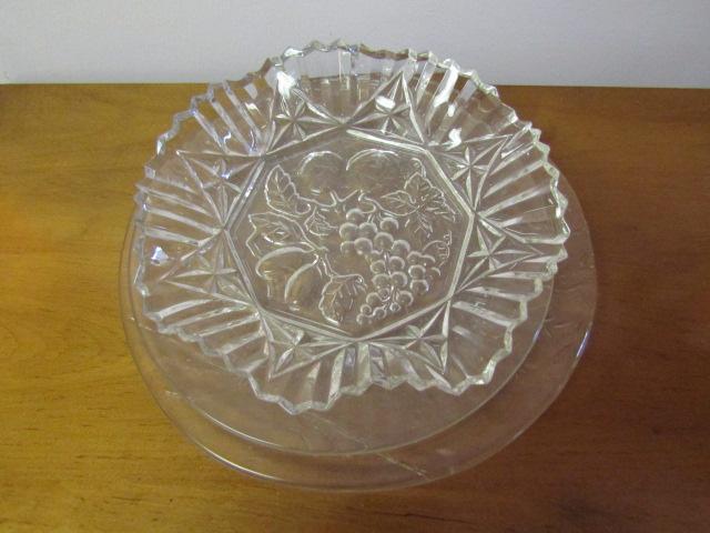3 Clear Glass Serving Pieces. 2 Plates, 1 Bowl