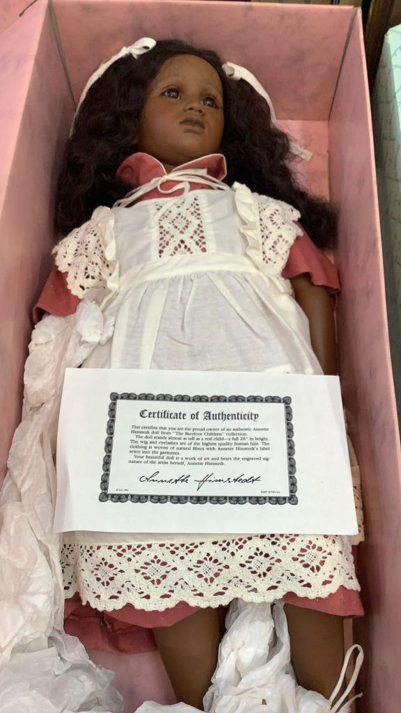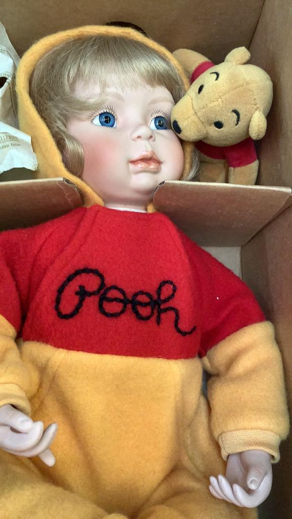 Madame Alexander Bride In box, Aston Drake Pooh doll wIth Bear, in boxÂ….Annette Himstedt barefoot doll, 26 inches w/ certificate