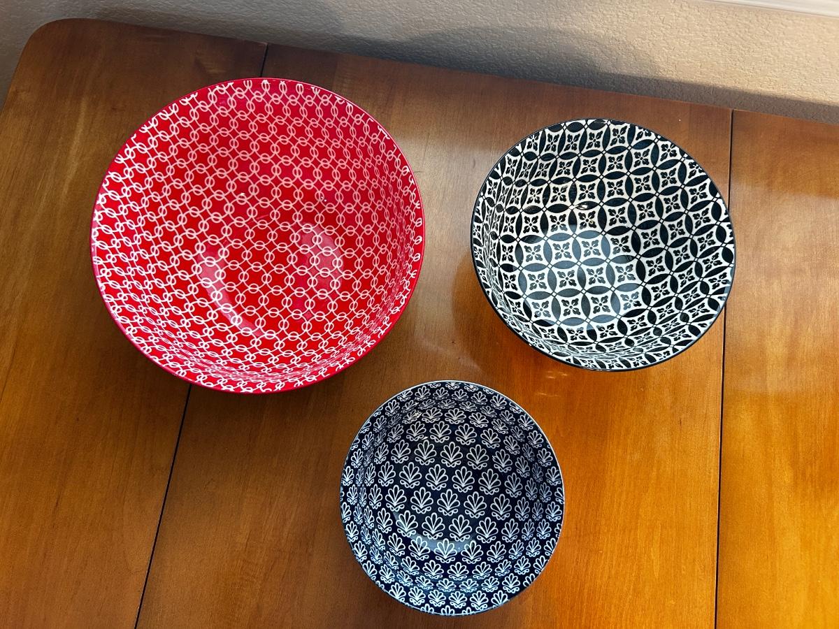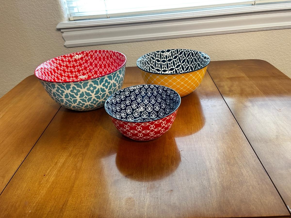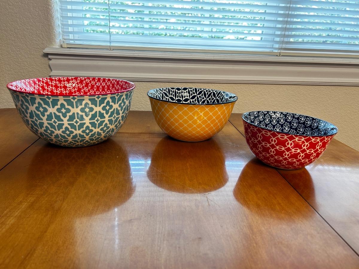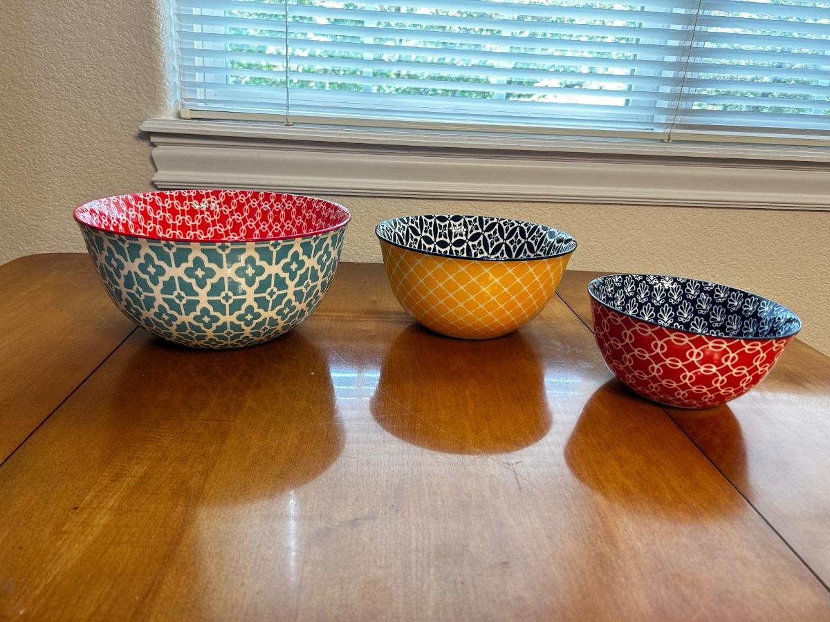 3 COLORFUL NOWAN MIXING/SERVING BOWLS