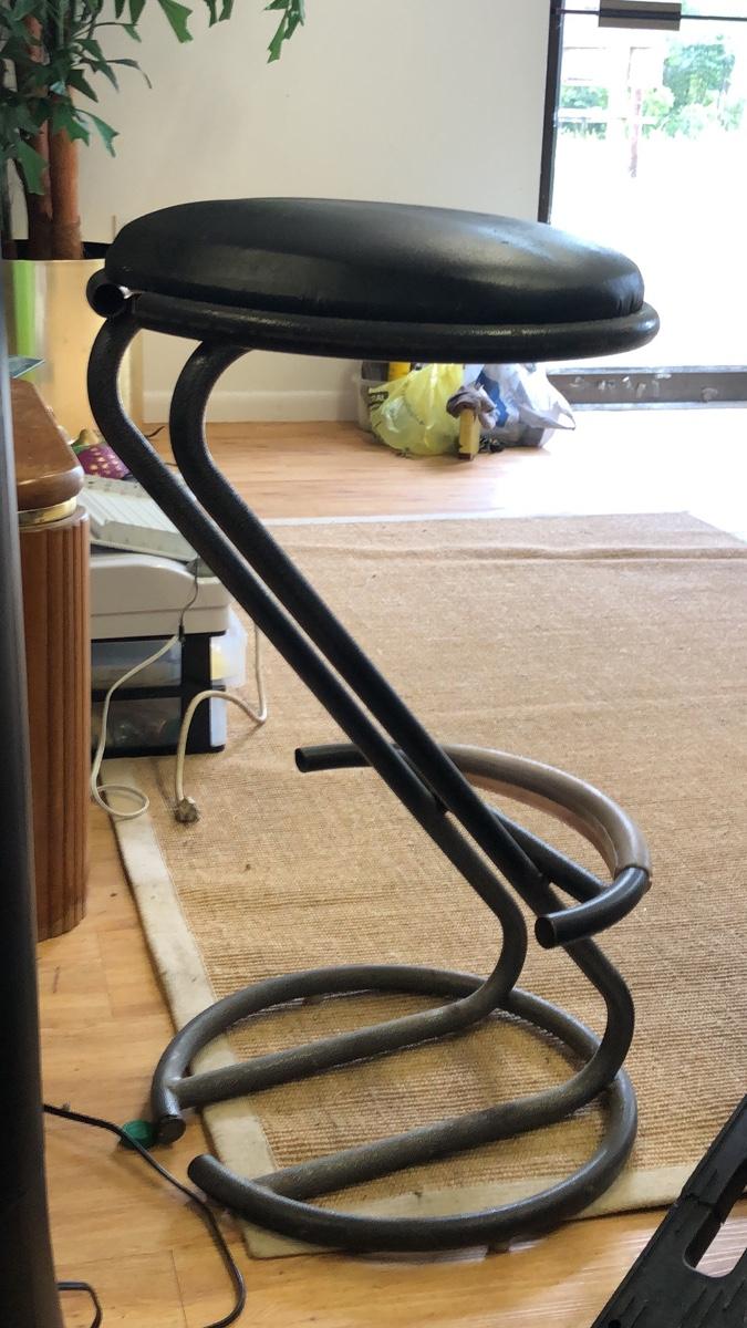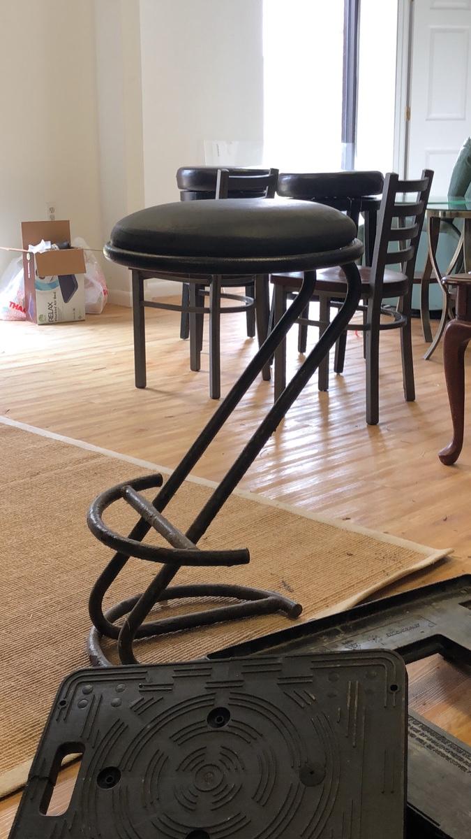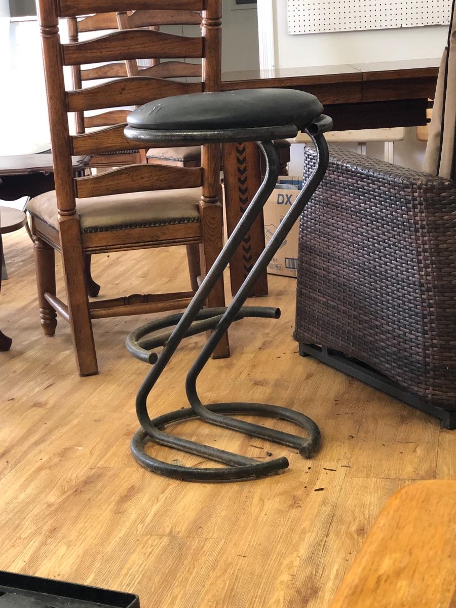 These are heavy iron barstools with foot rest. They need some tlc but sturdy.