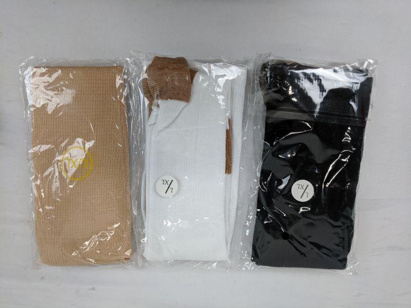 3 Compression Socks, Tan, White, Black, L/XL - New