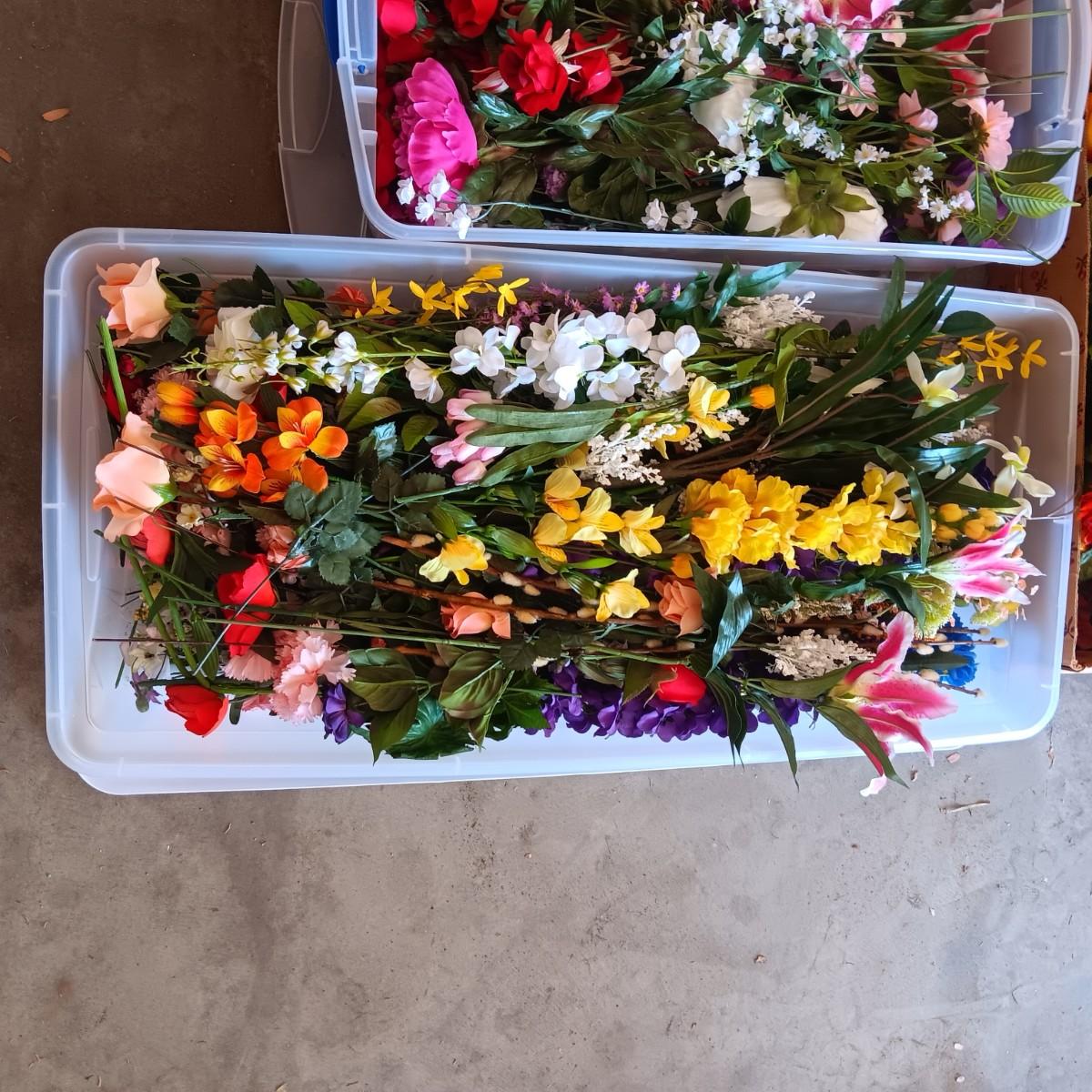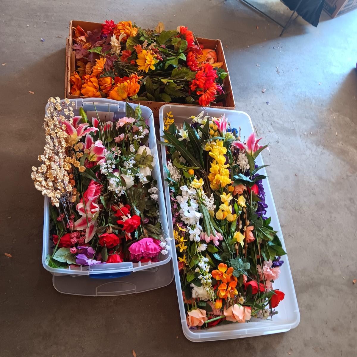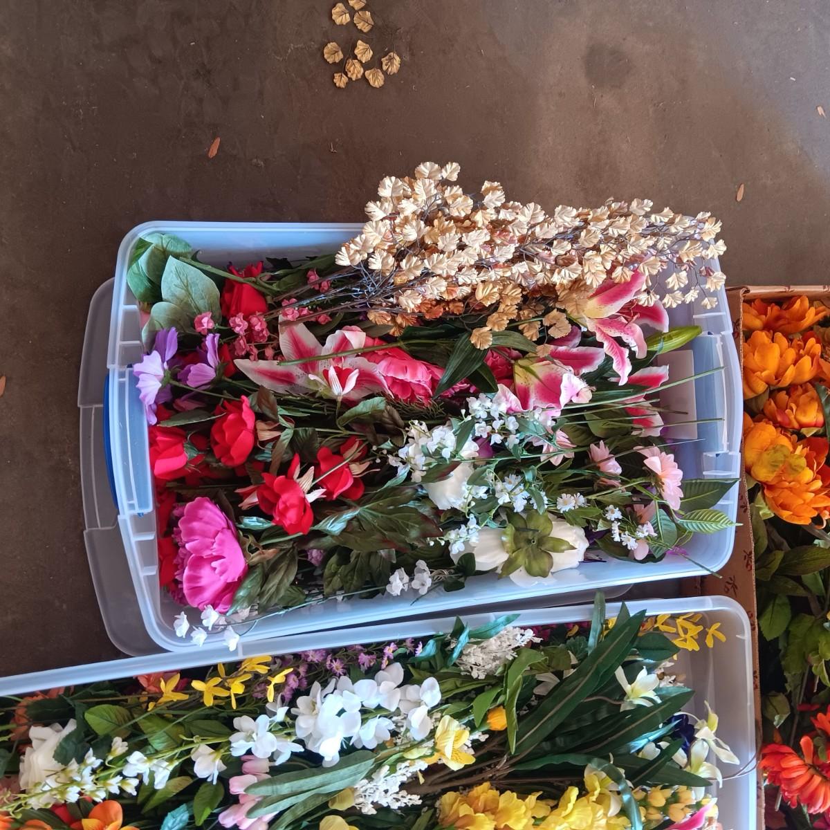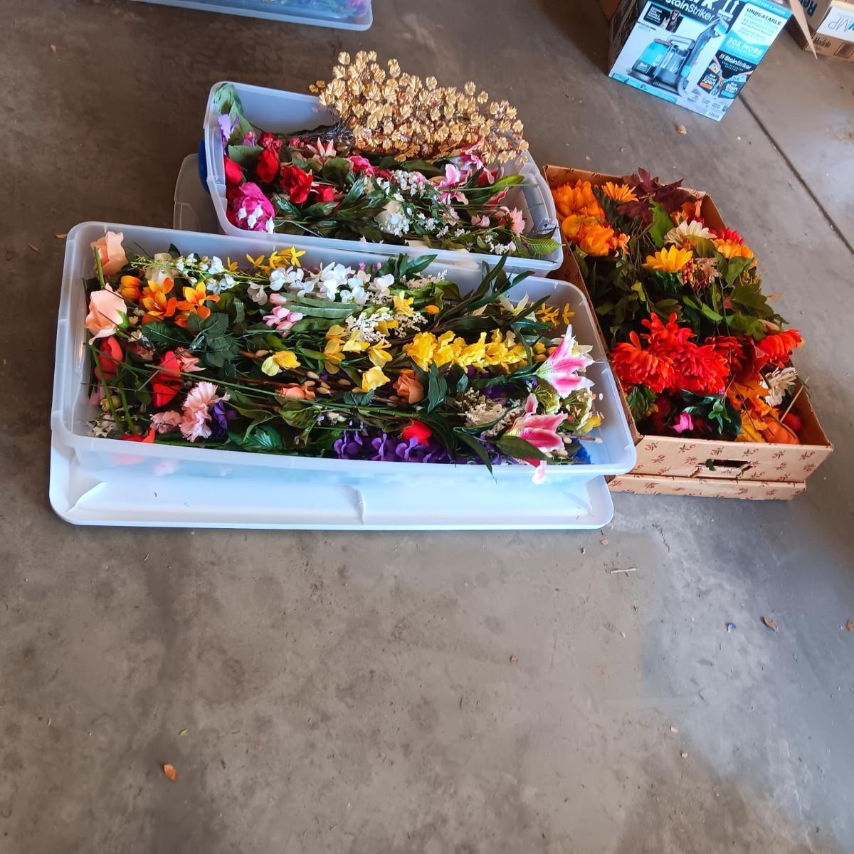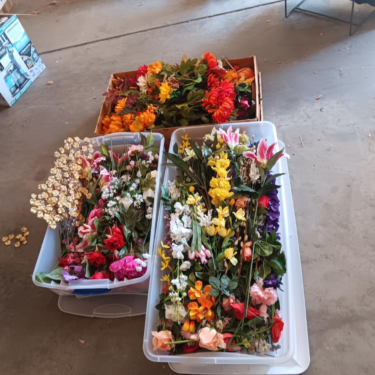 3 CONTAINERS OF FAUX FLOWERS