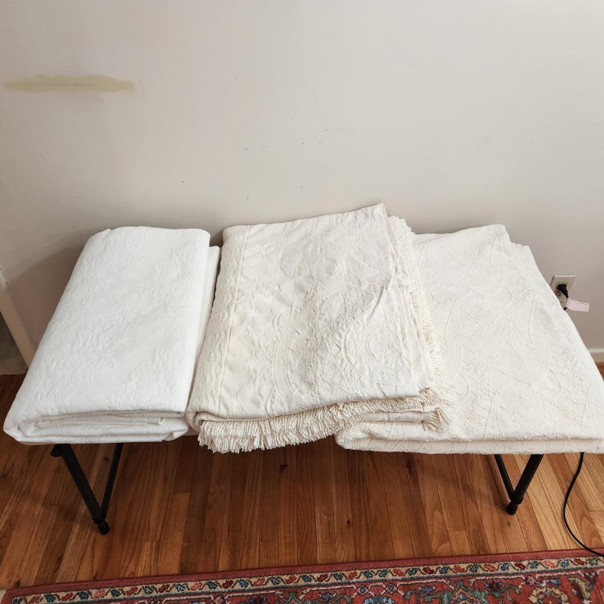 3 Cotton Bed Coverlets Twin and Queen lot 584