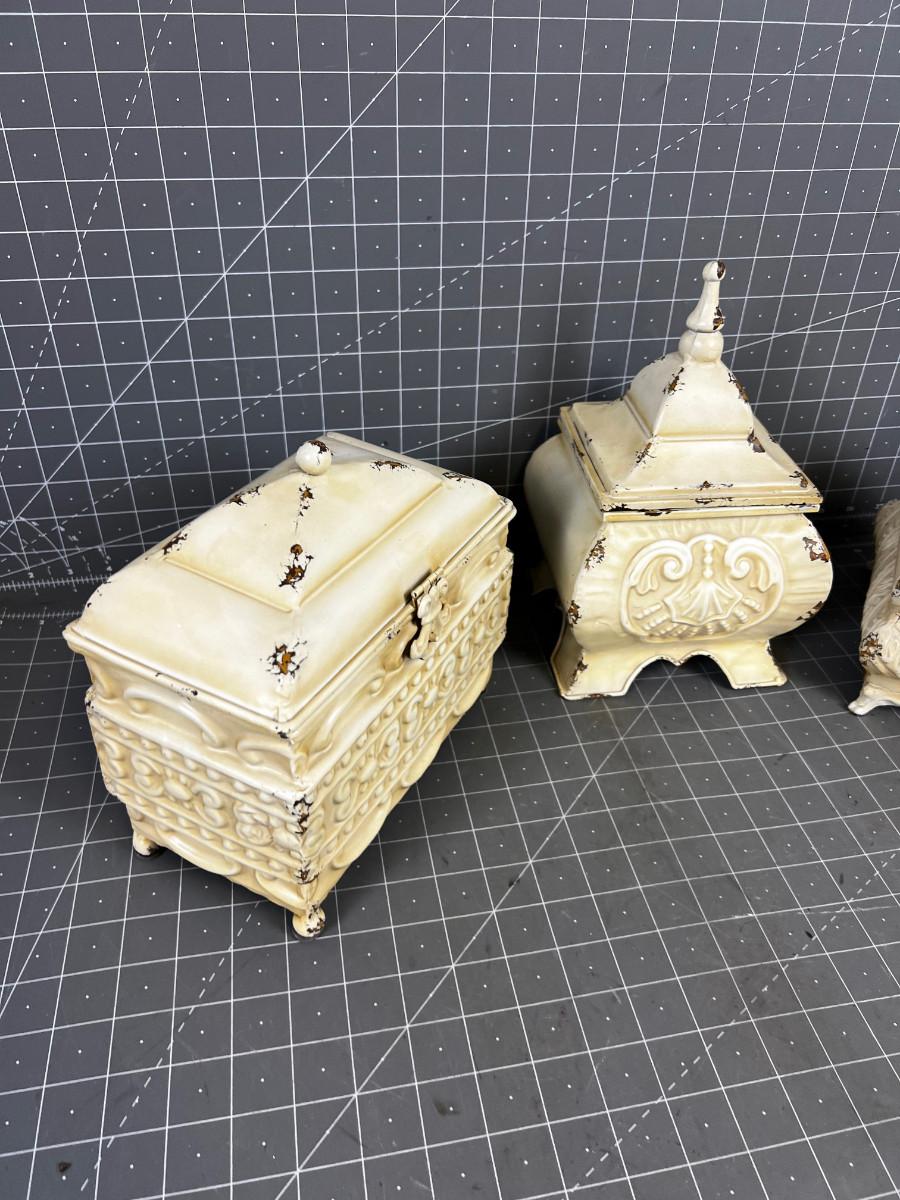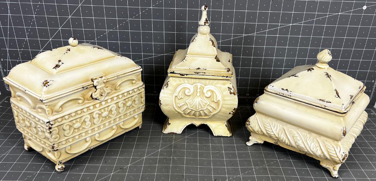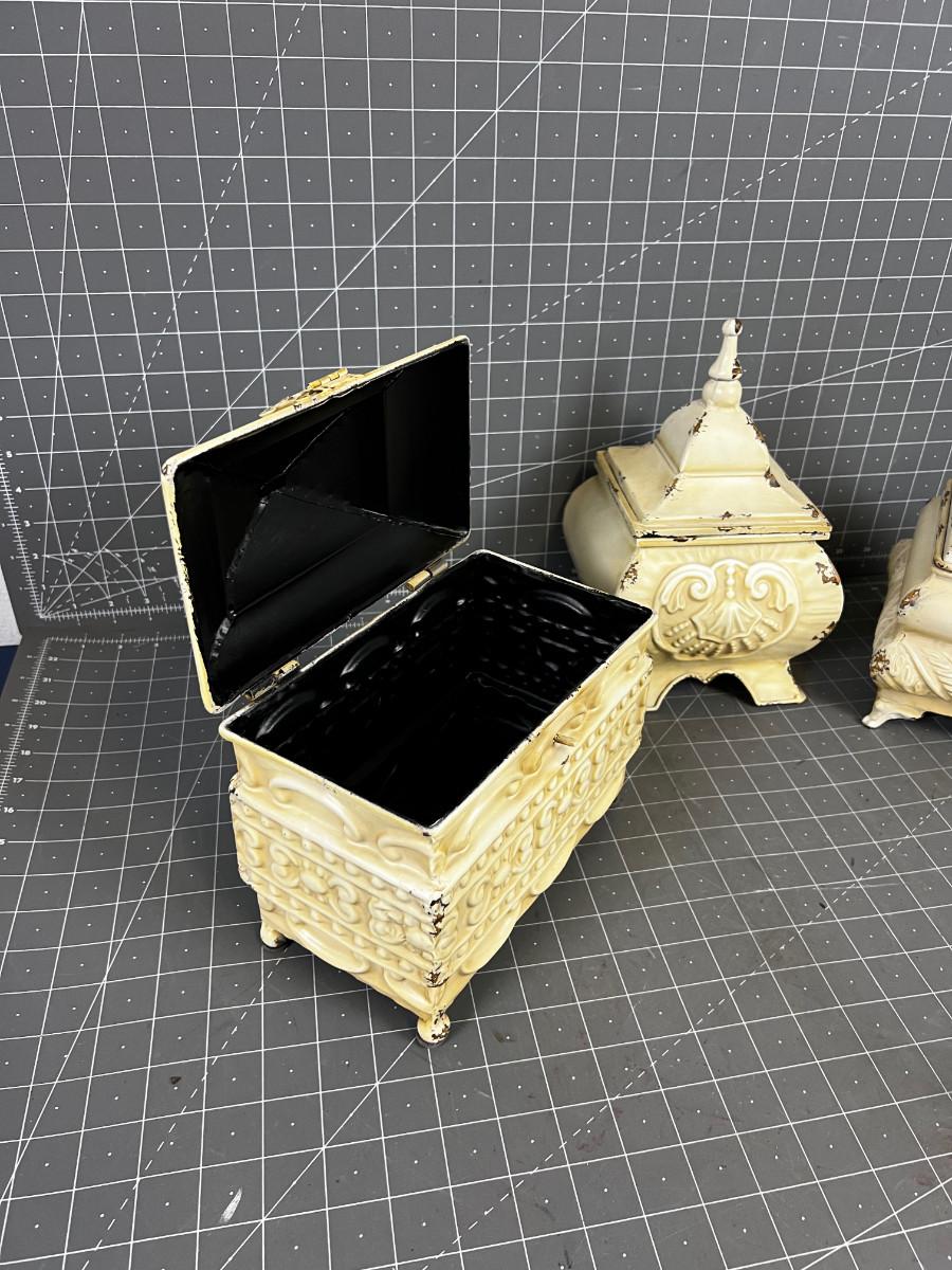 All have matching Lids. Tin. Well Made. GREAT FOR Keeping Small items.