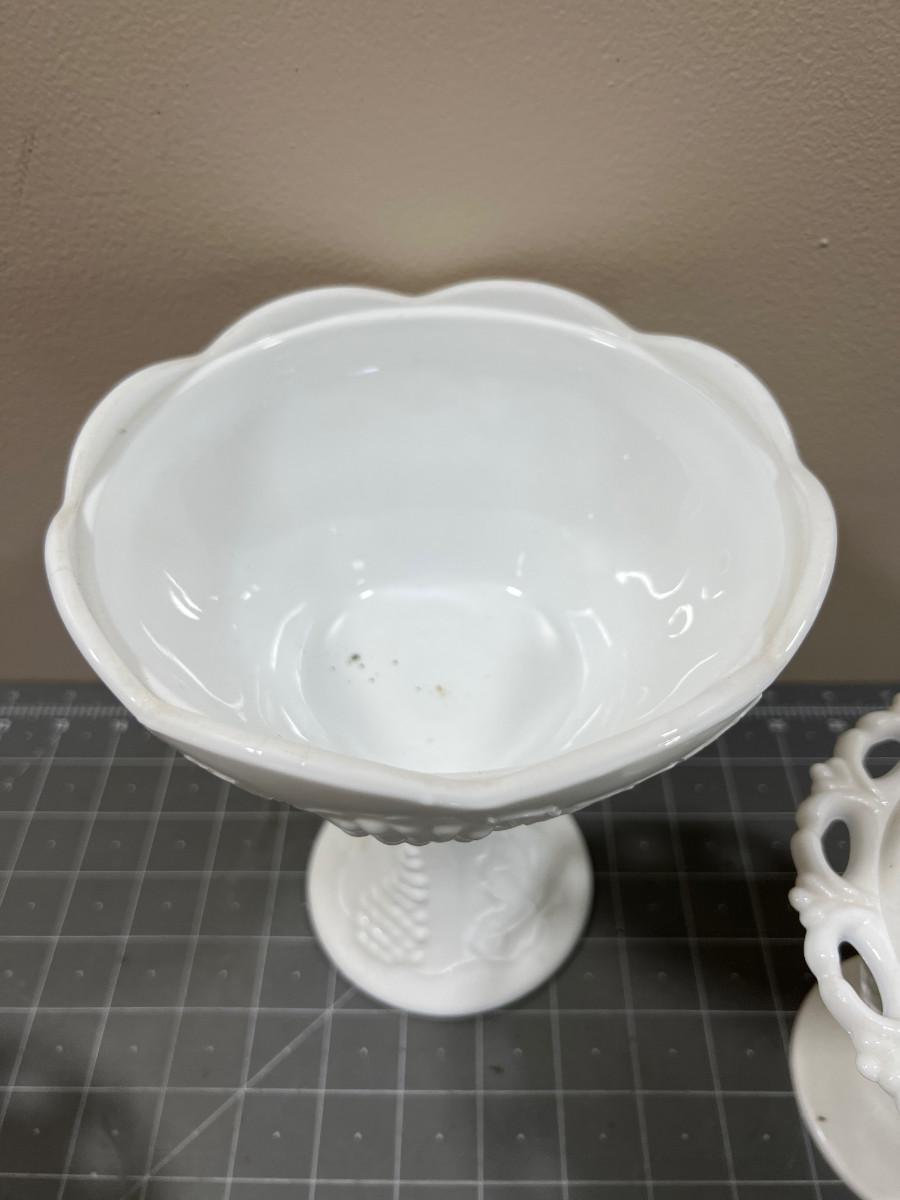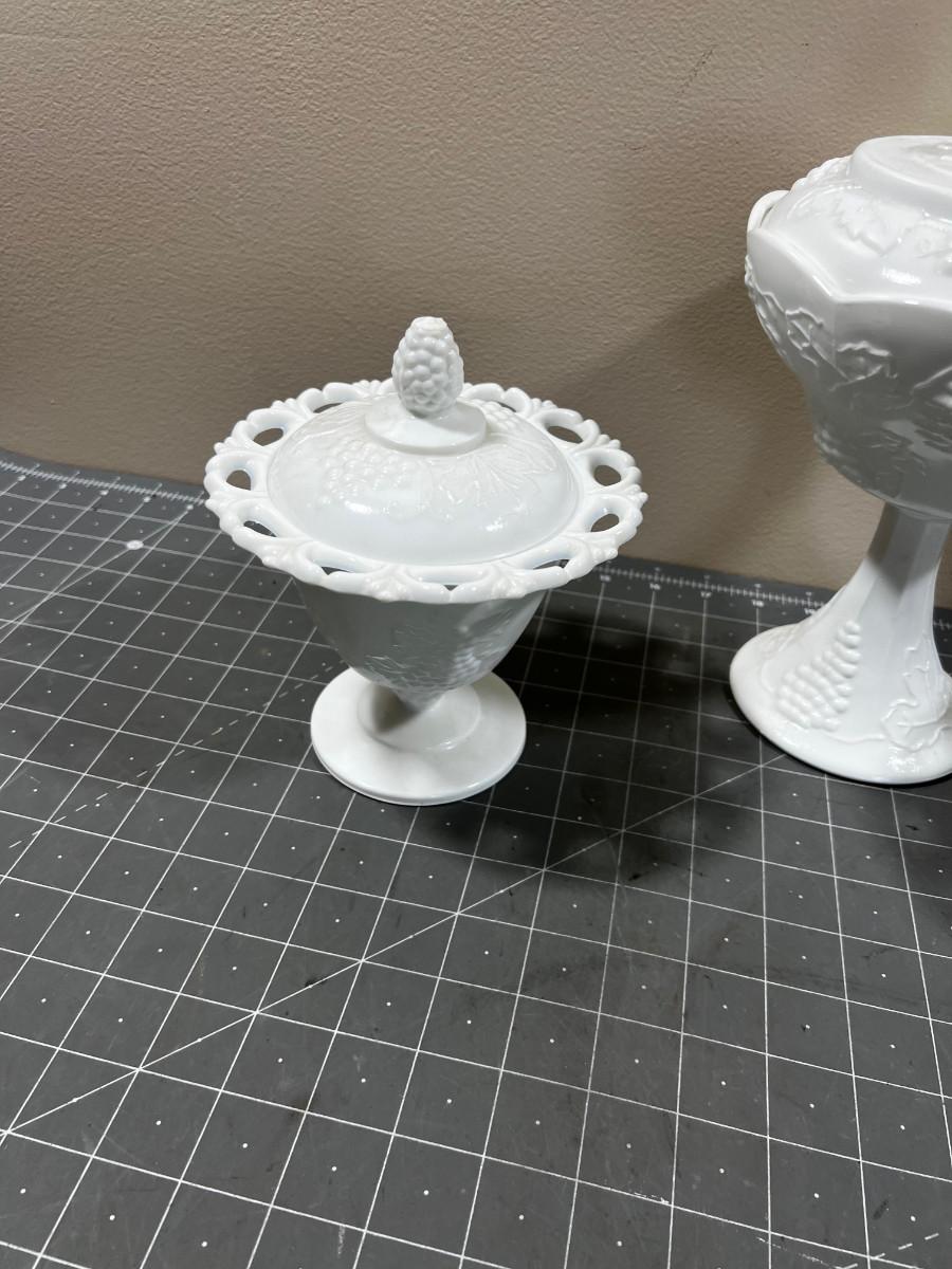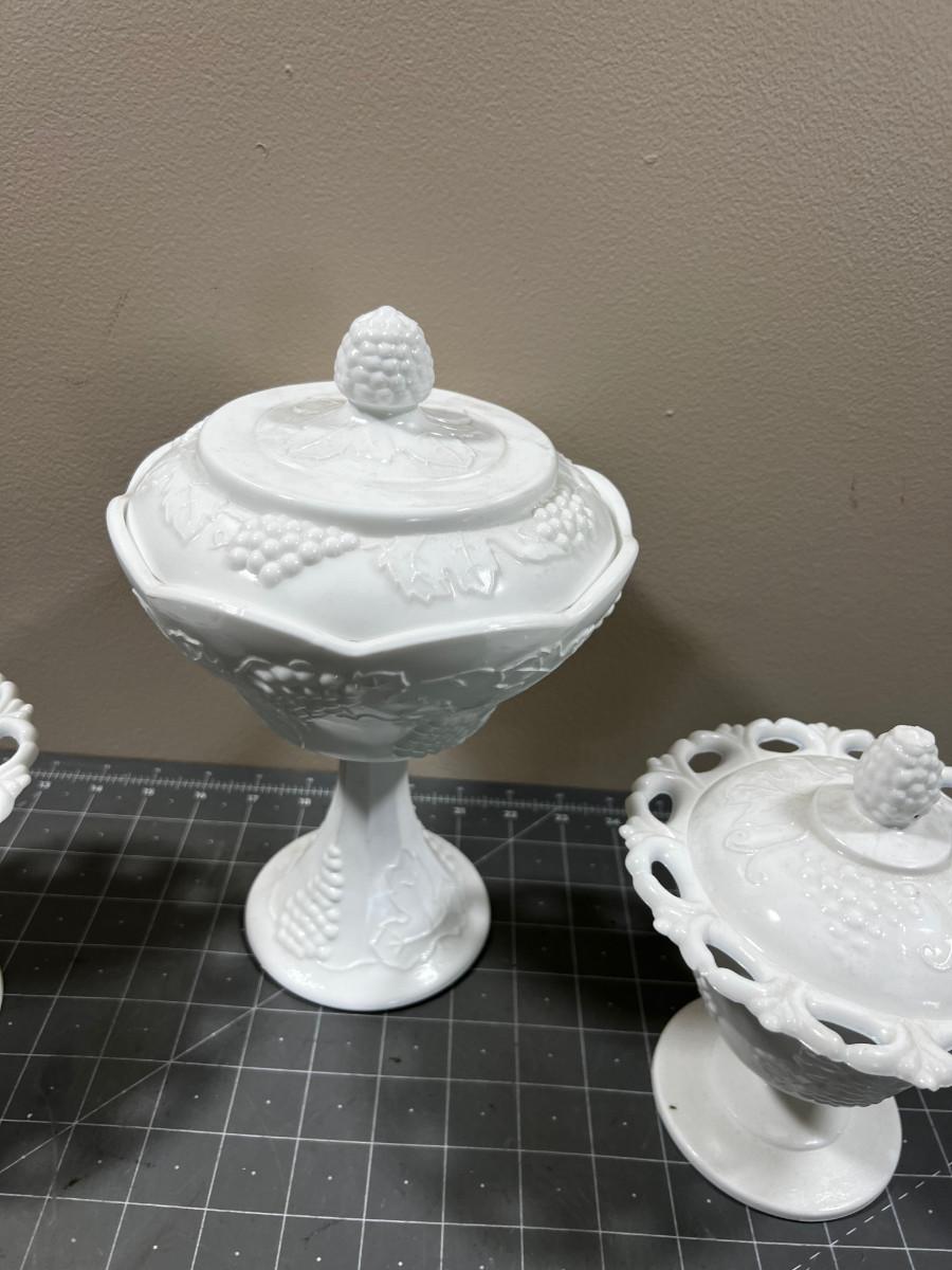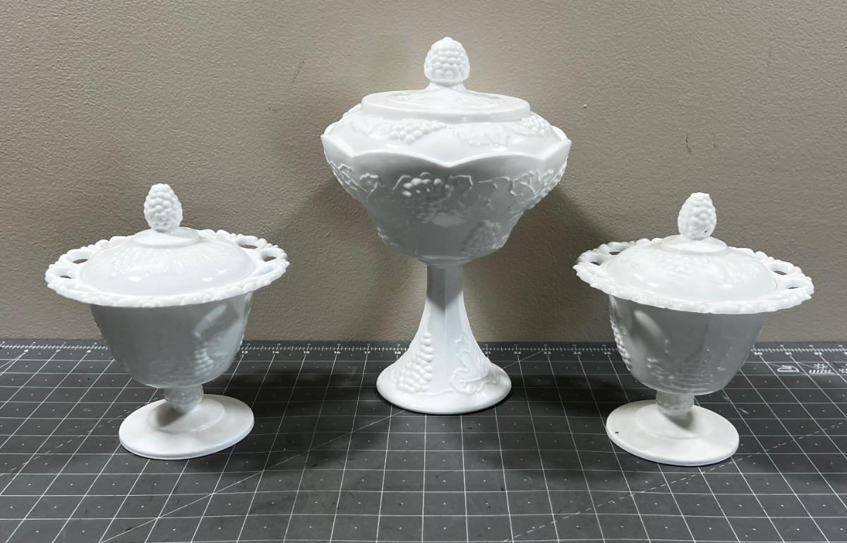 3 Covered Milk Glass Compotes