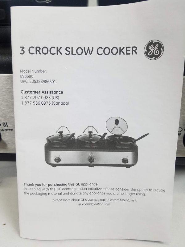 3 Crock Slow Cooker by GE, With Box