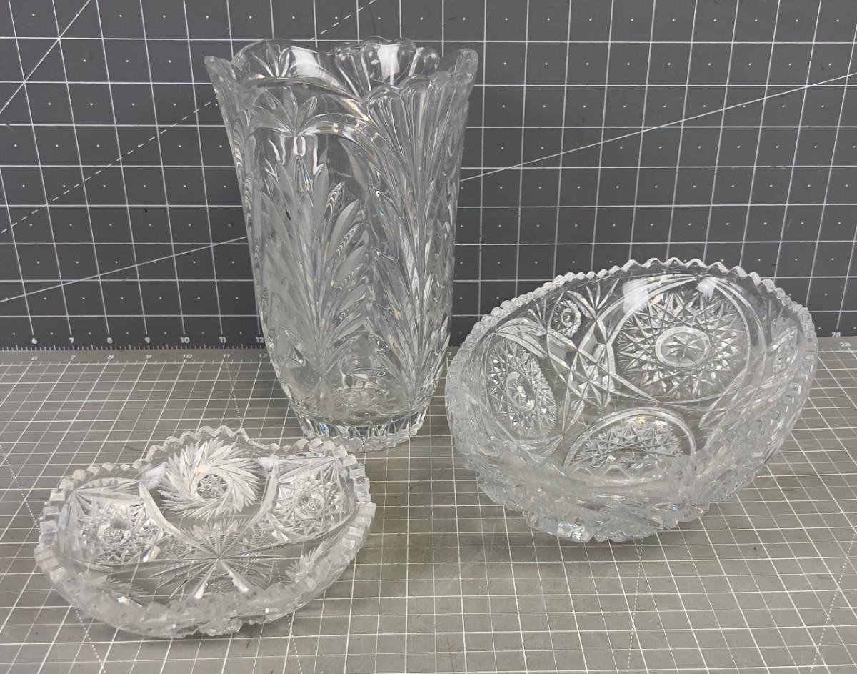 3 Crystal Bowls and Vases