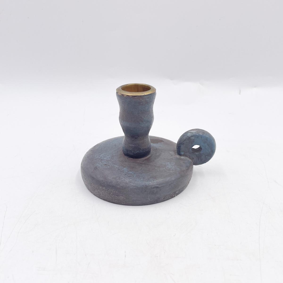 3” DARK BLUE WOODEN CANDLESTICK