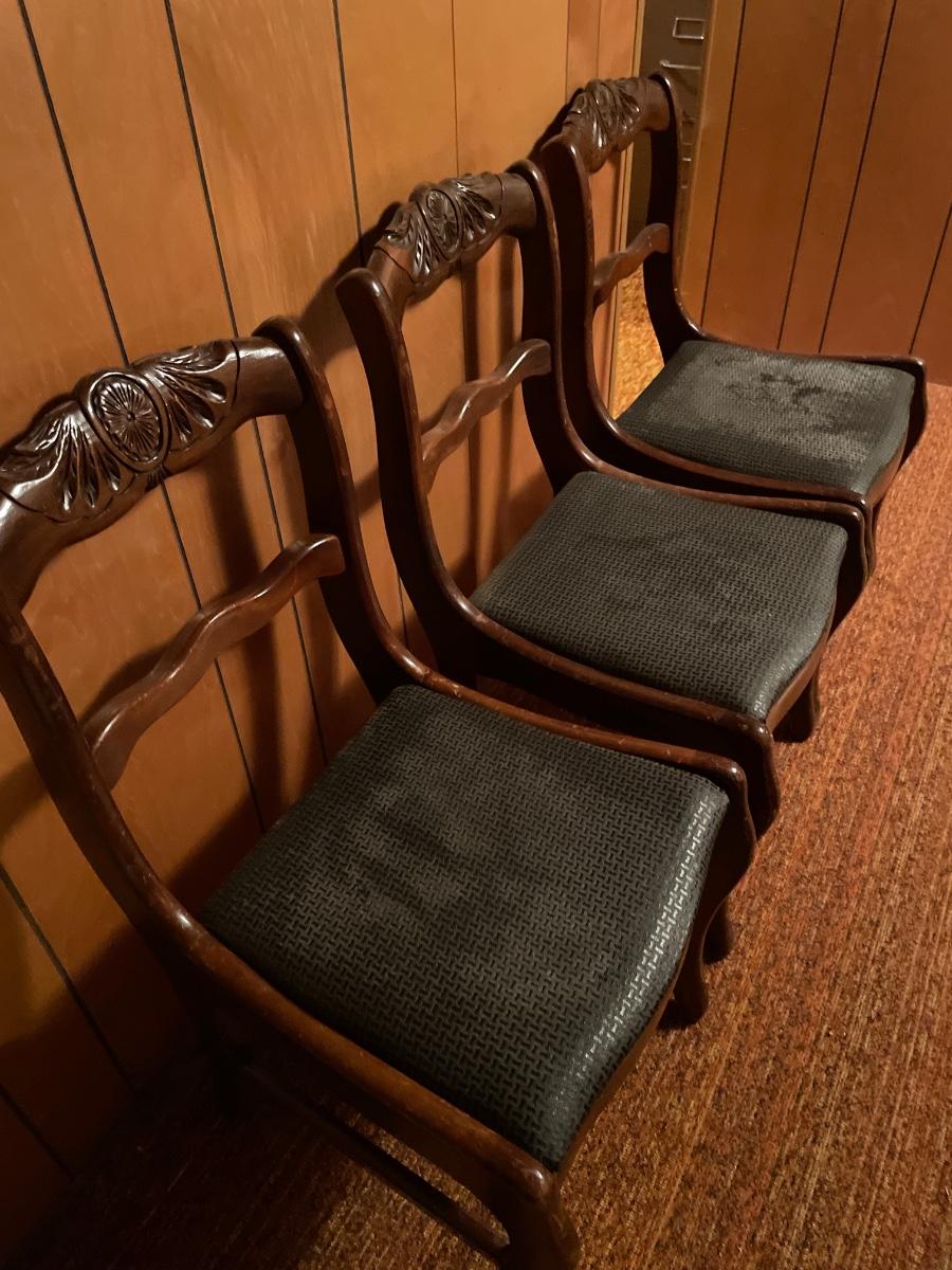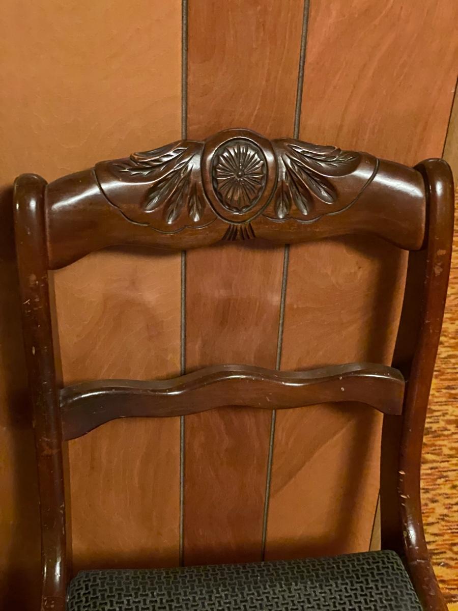 4 dark wood chairs