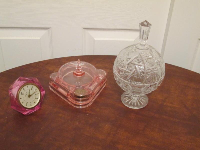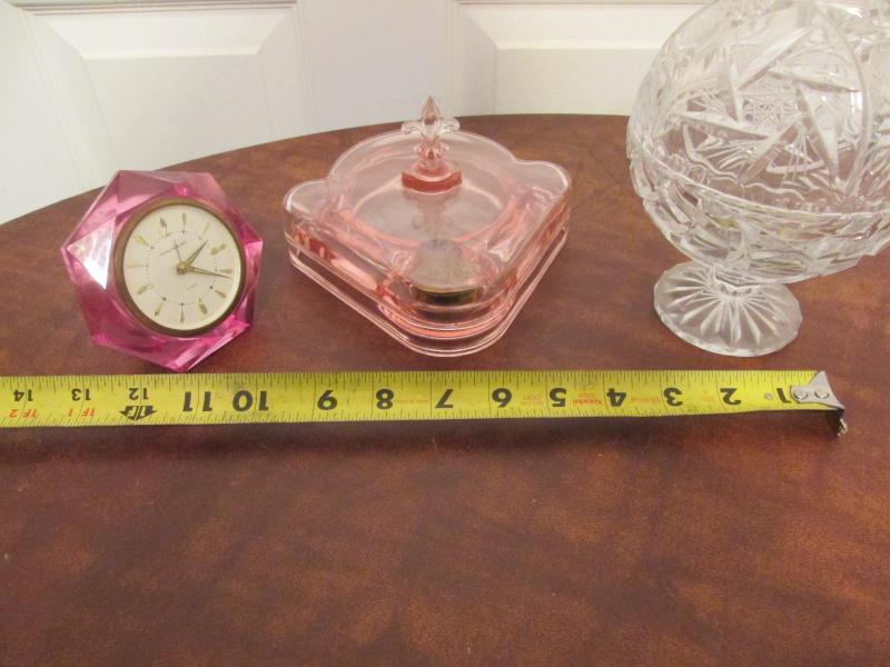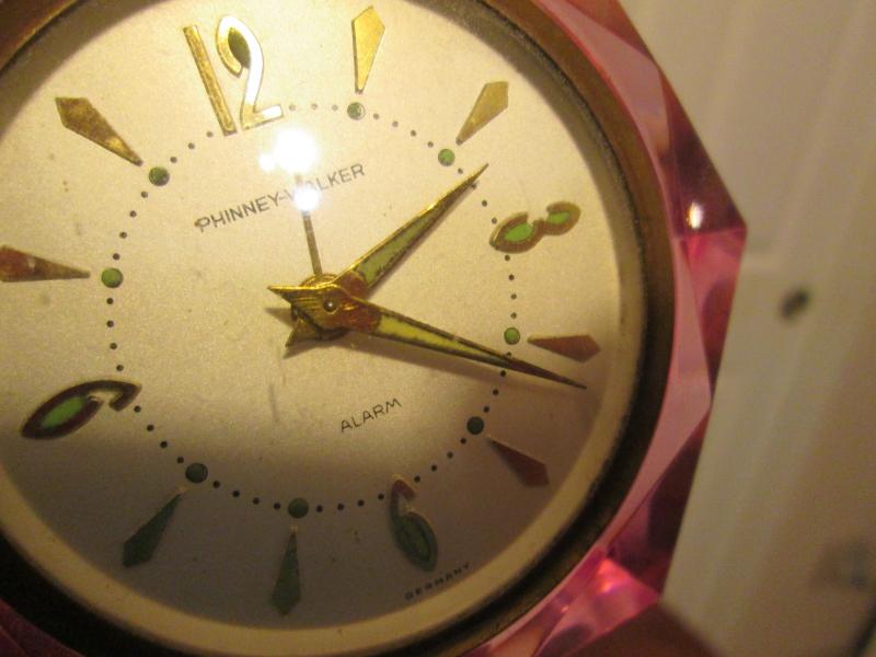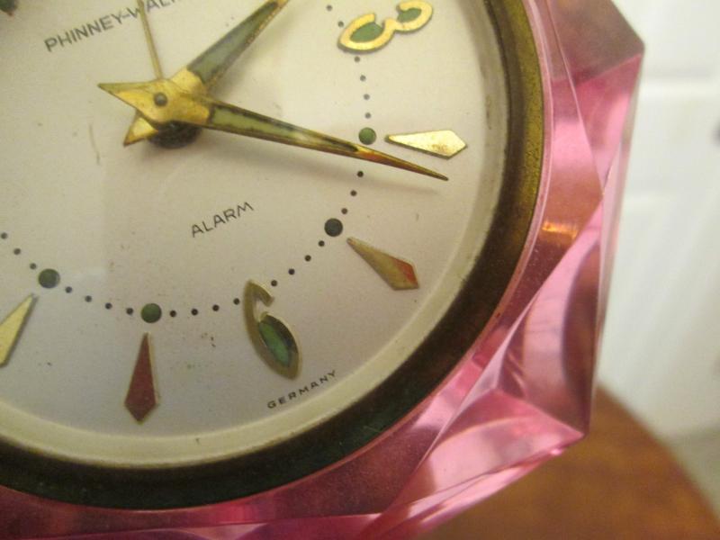 Candy Dish, makeup dish, Clock - Phinney Walker German Pink Lucite Alarm Clock ~ Wind Up (missing parts)