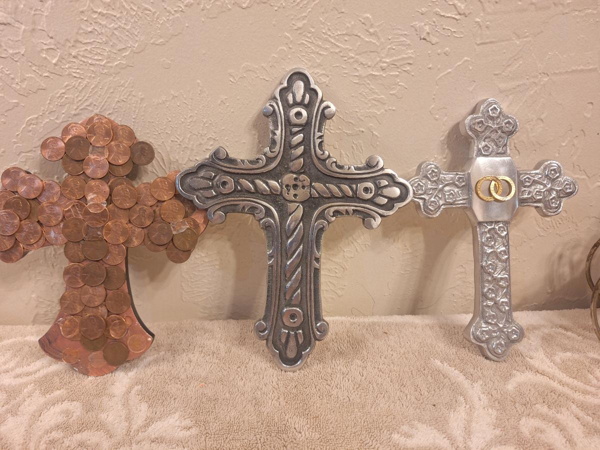 3 decorative metal crosses