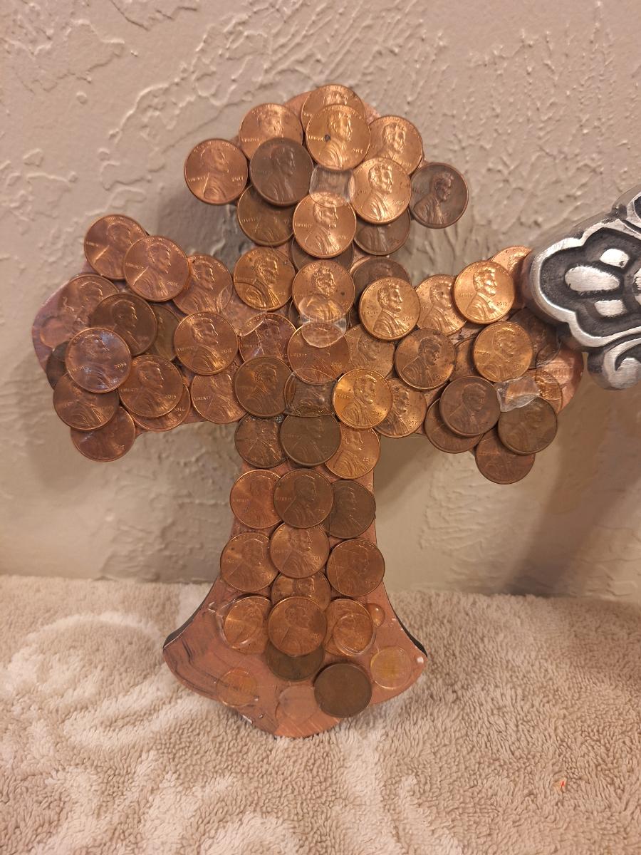 these have been in storage in cold temps. The one with the pennies have some spots where pennies have fallen off. Looks like they are put on with hot glue.