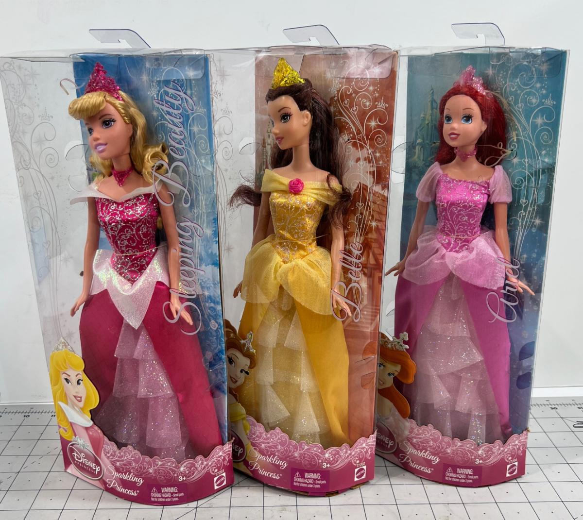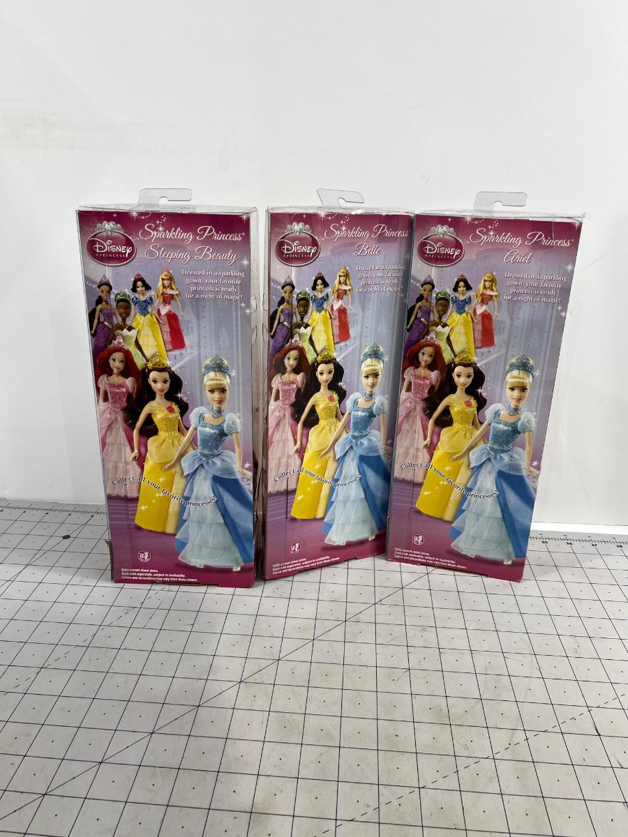 3 Disney Sparkling Princess, Bell, Ariel and Sleeping Beauty