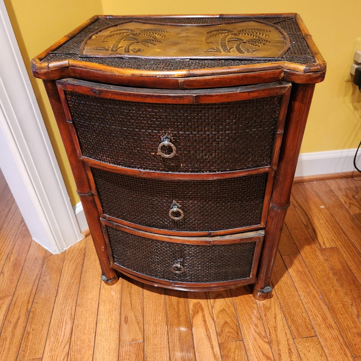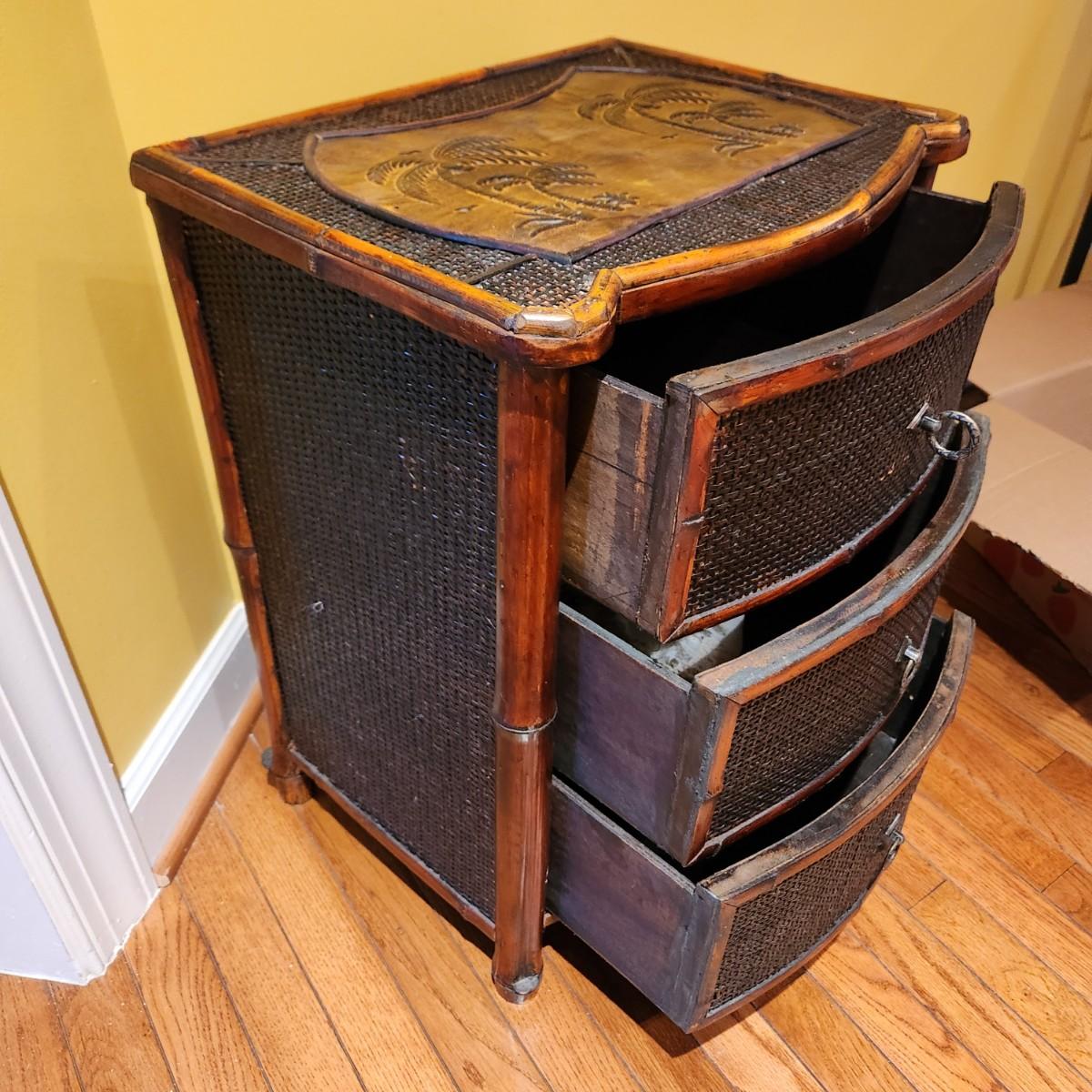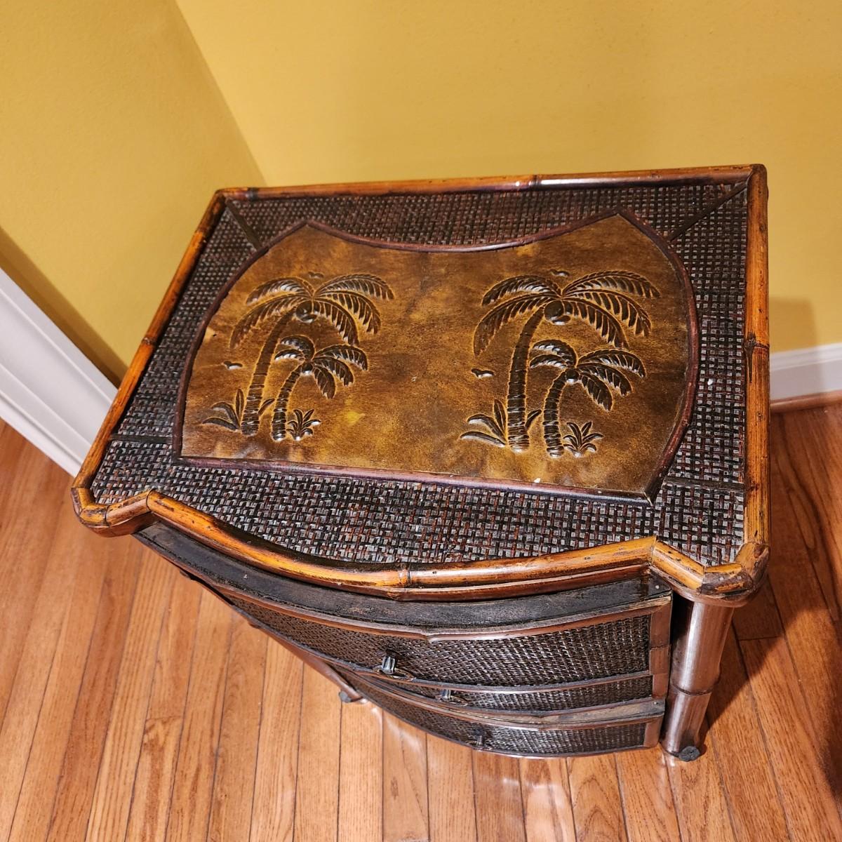 3 Drawer Cabinet side table bamboo w Palms top details 18x14x24