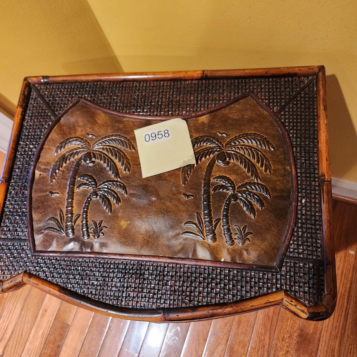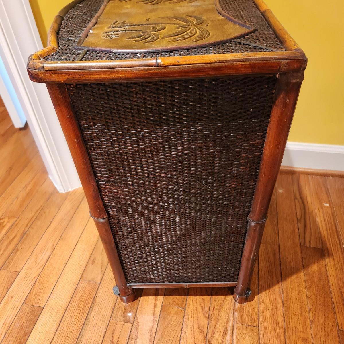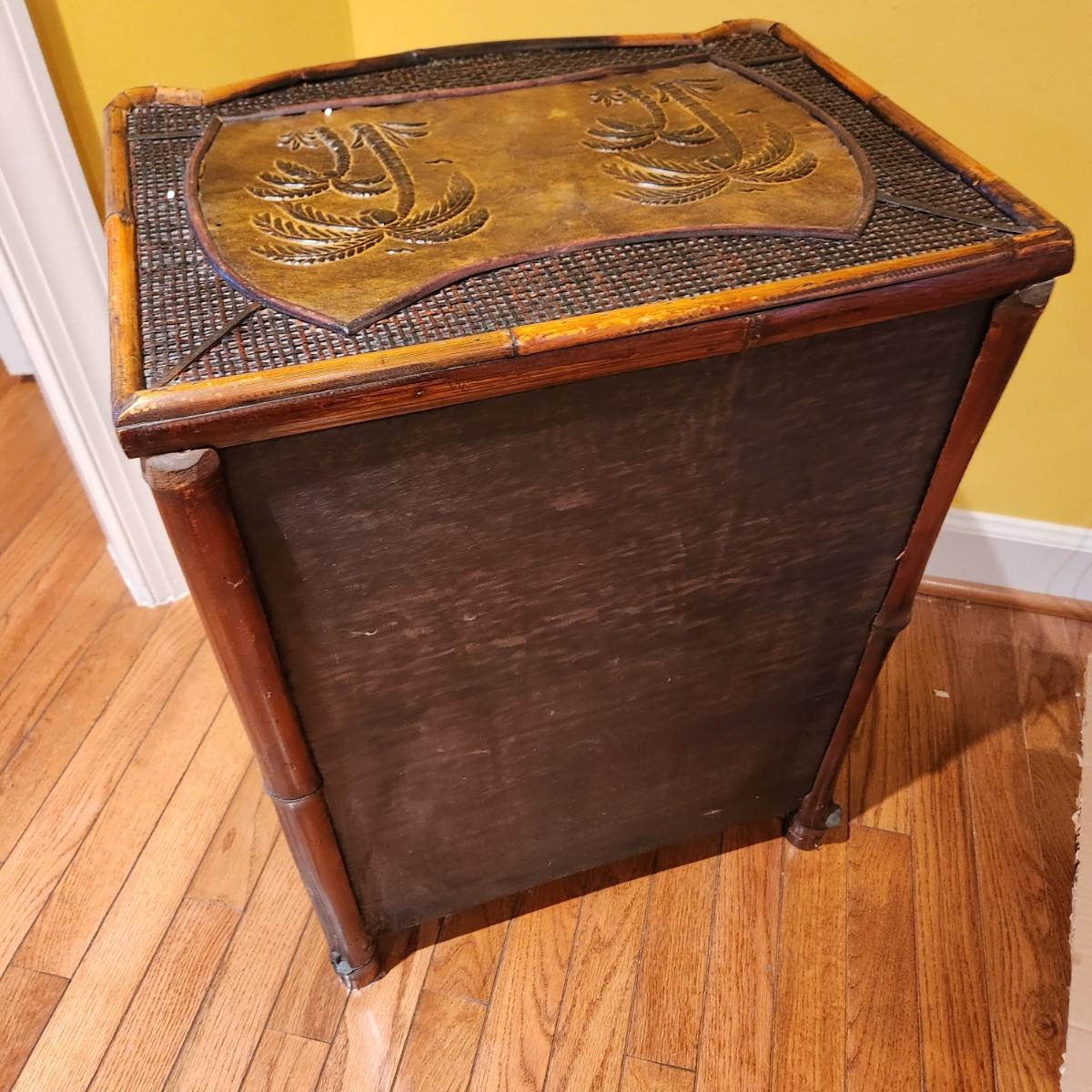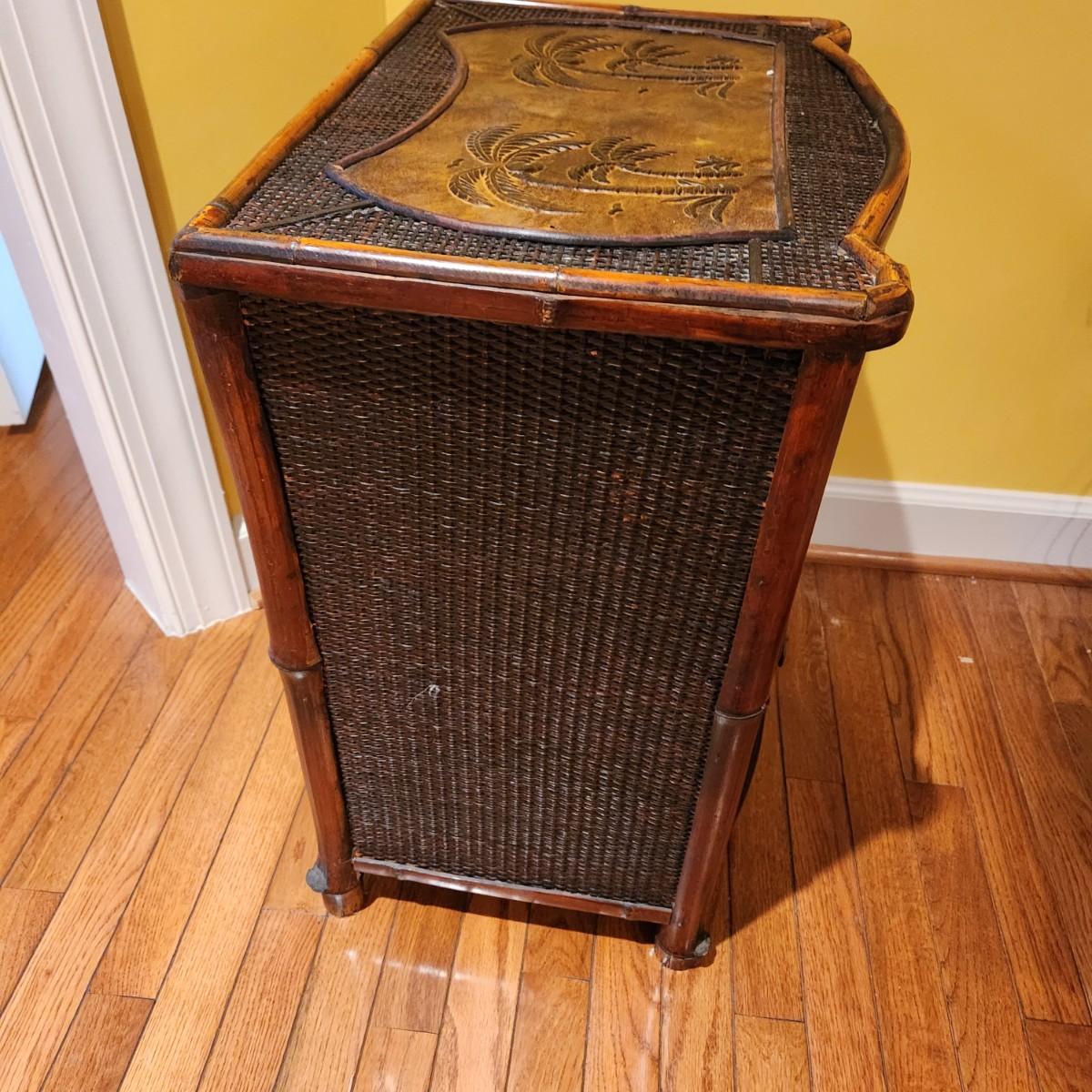 3 Drawer Cabinet side table bamboo w Palms top details 18x14x24