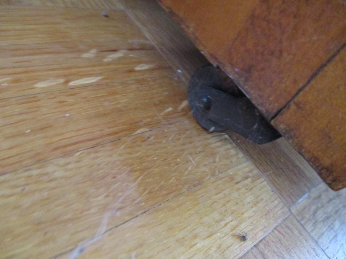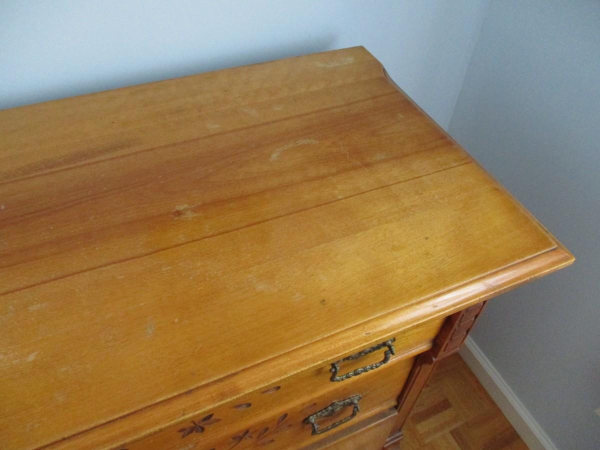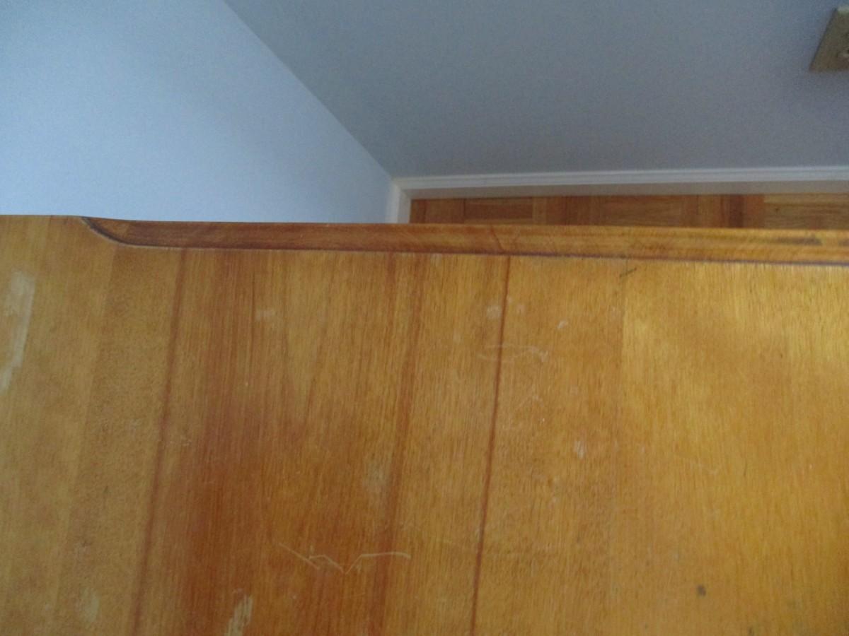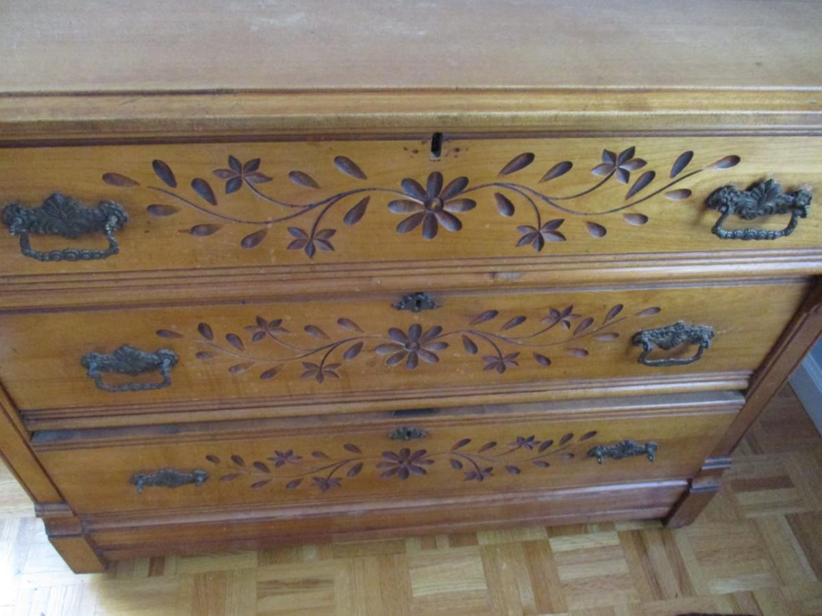 The bottom drawer does have a broken handle on the left side, the right side handle is off. Handles are inside