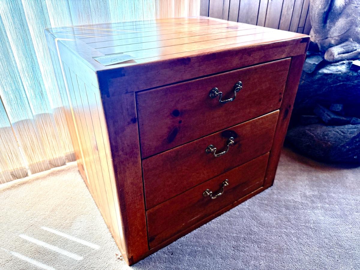 3 drawer custom made 28”w x 24”d x 25”t wood cabinet
