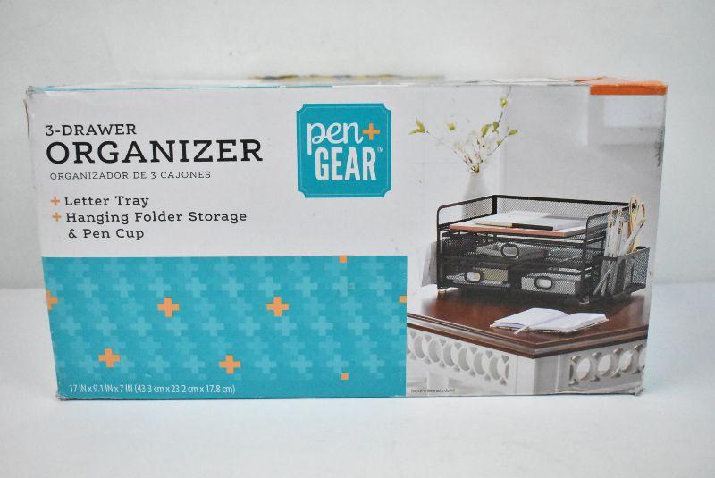 3 Drawer Desk Organizer with Letter Tray, Hanging Folder Storage & Pen Cup - New