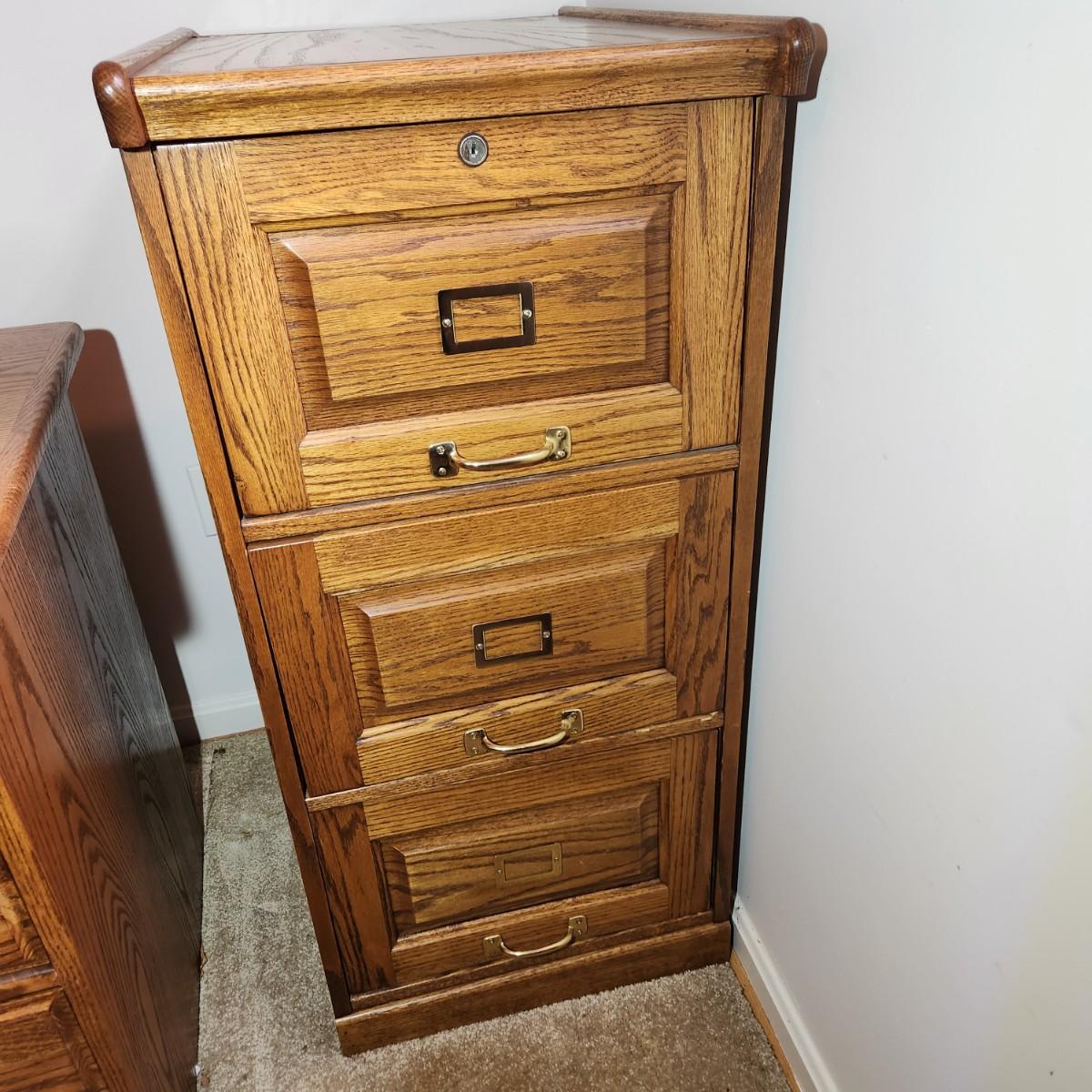 3 Drawer Oak Wood Office File Cabinet 19x25x40