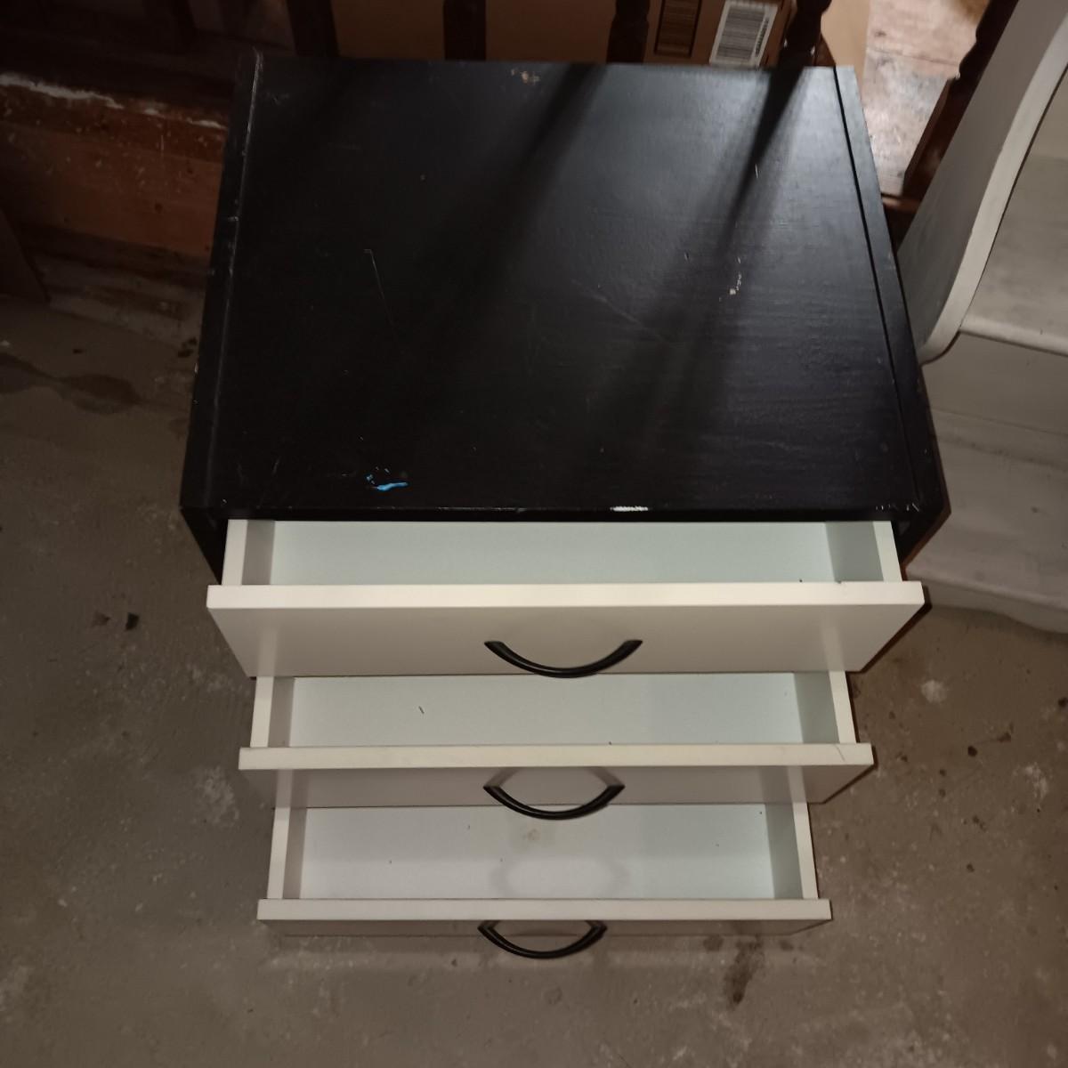 3 DRAWER ORGANIZER, SMALL BOOKCASE AND A CHILD'S CHAIR