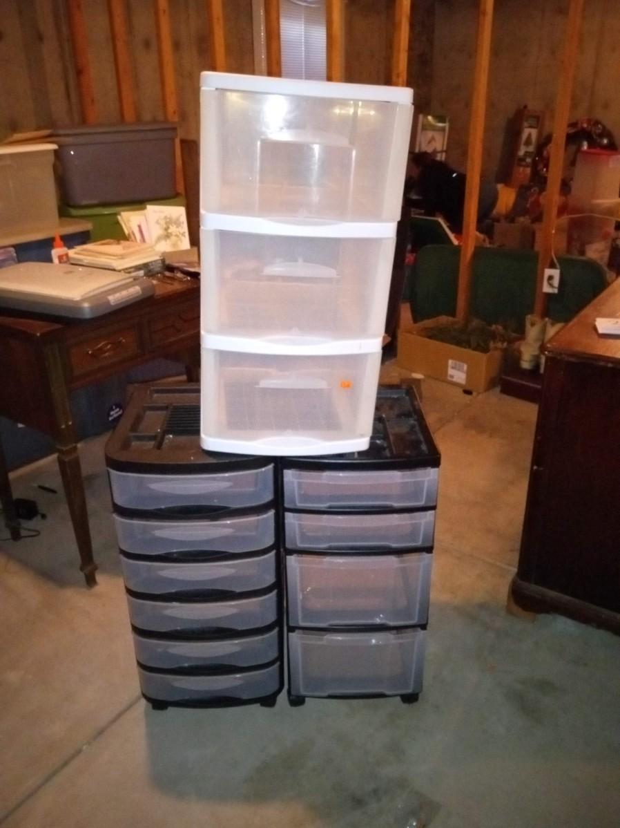 3 DRAWER ORGANIZERS, 2 ON WHEELS