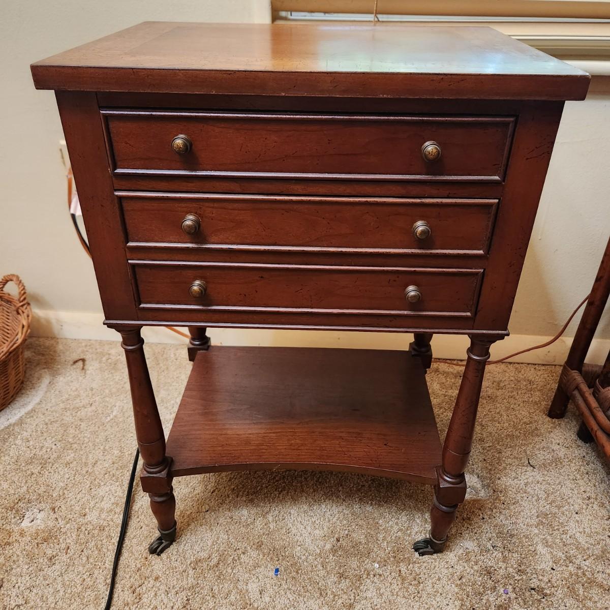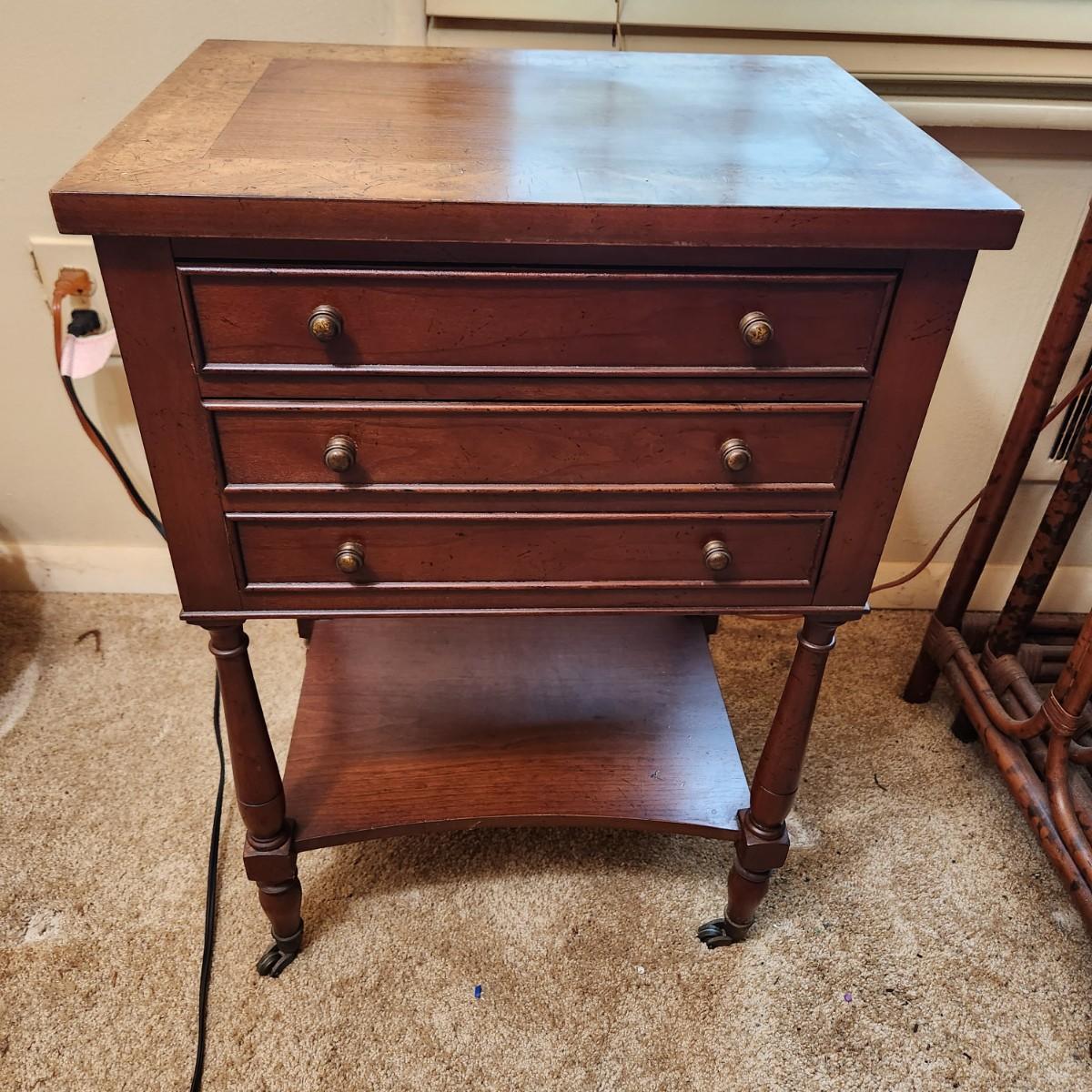 3 Drawer Solid wood  Side table on casters 16x12x24