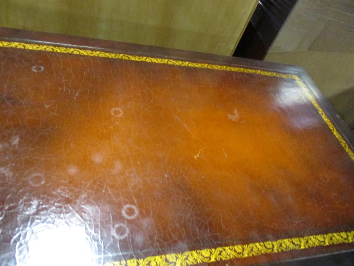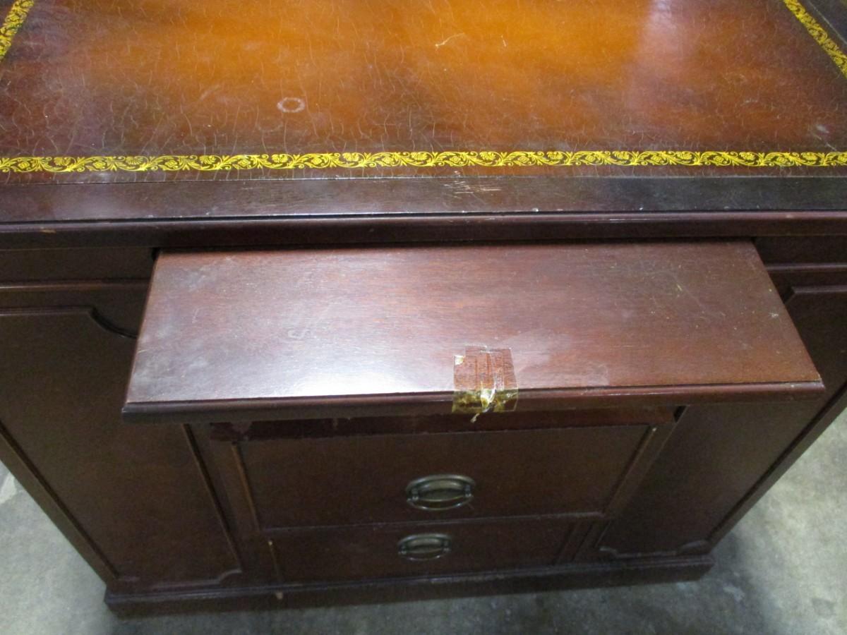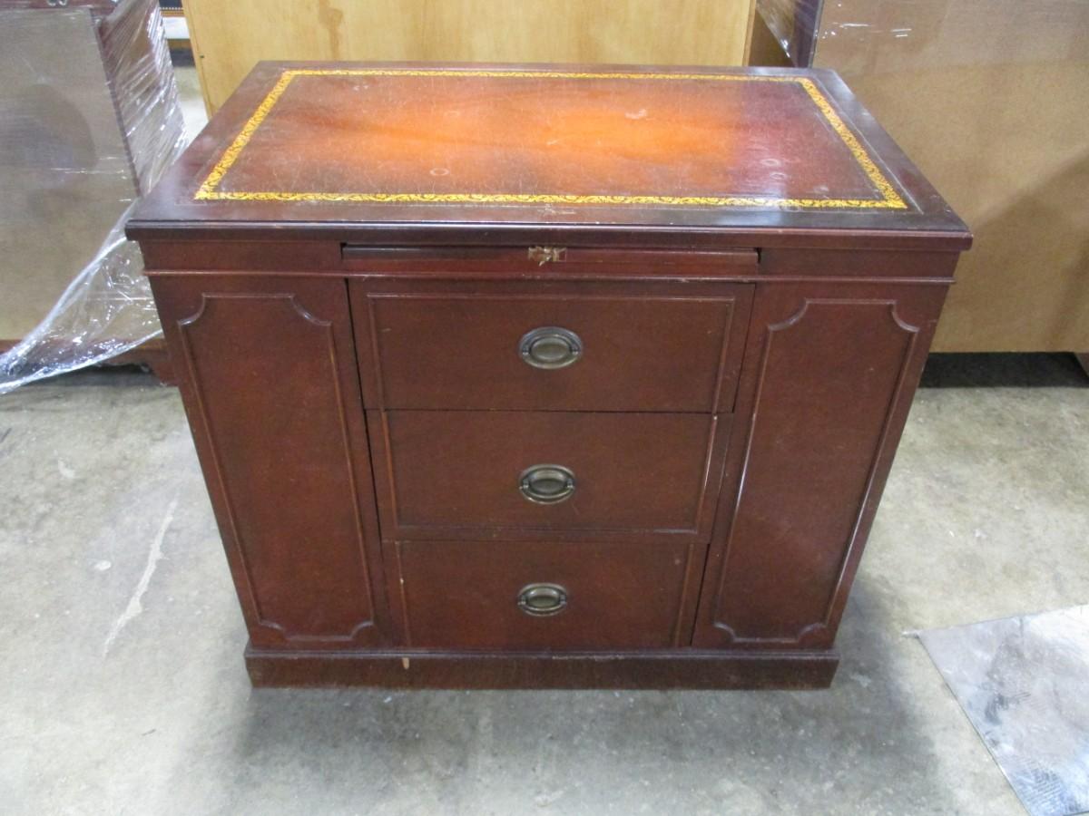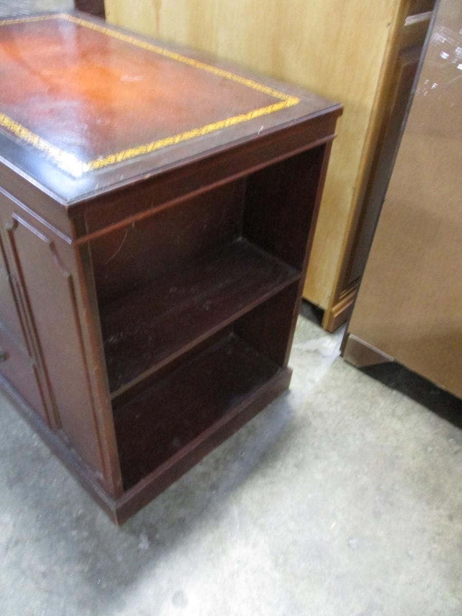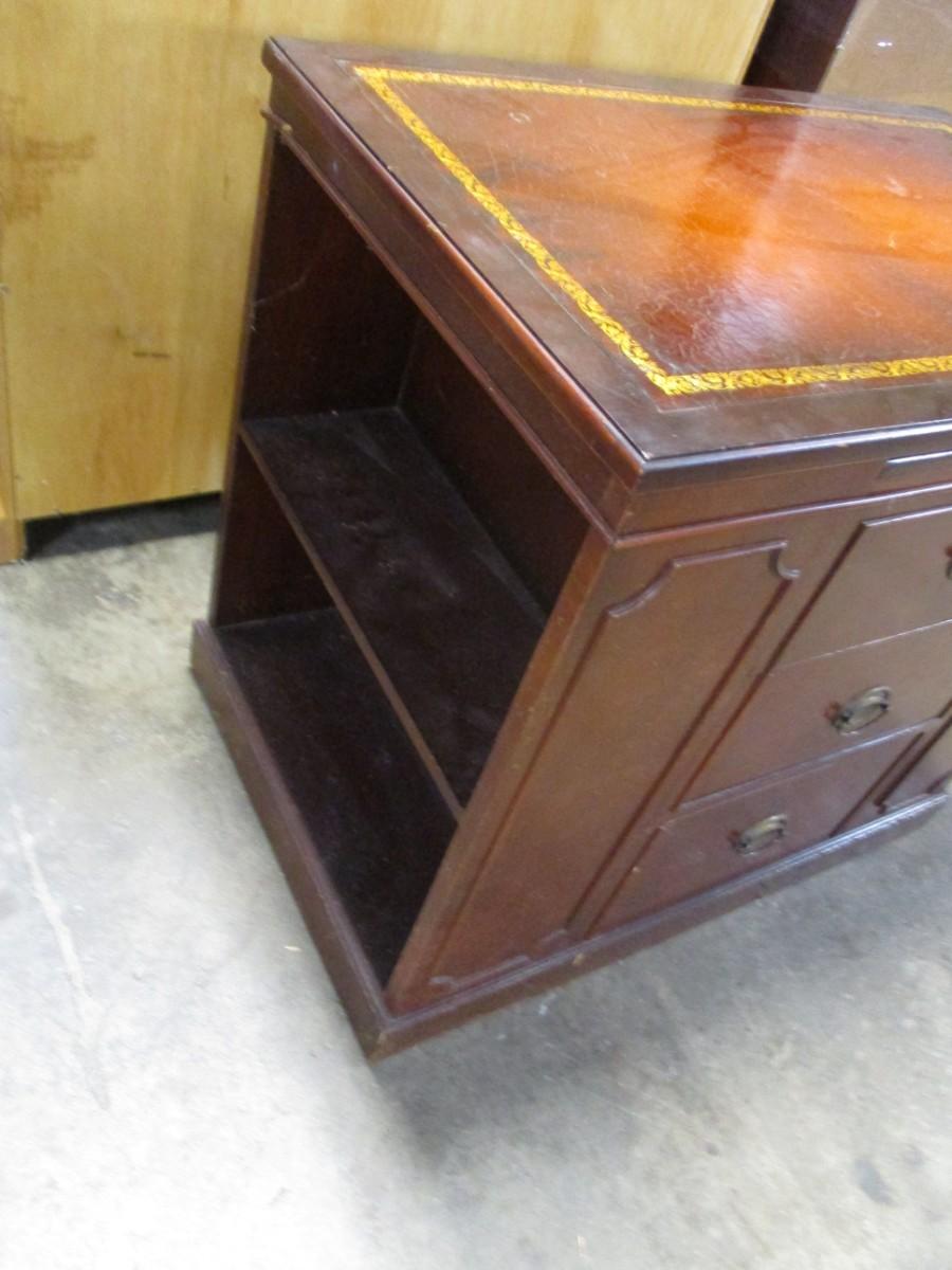 3 Drawer Lawyer Writing Office Desk With Shelving On The Side 1 Of 2 - Desk has leather tops with gold embossing