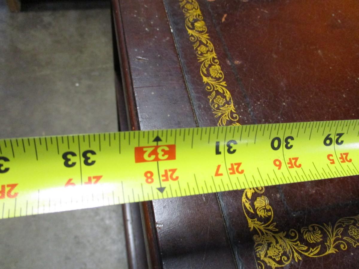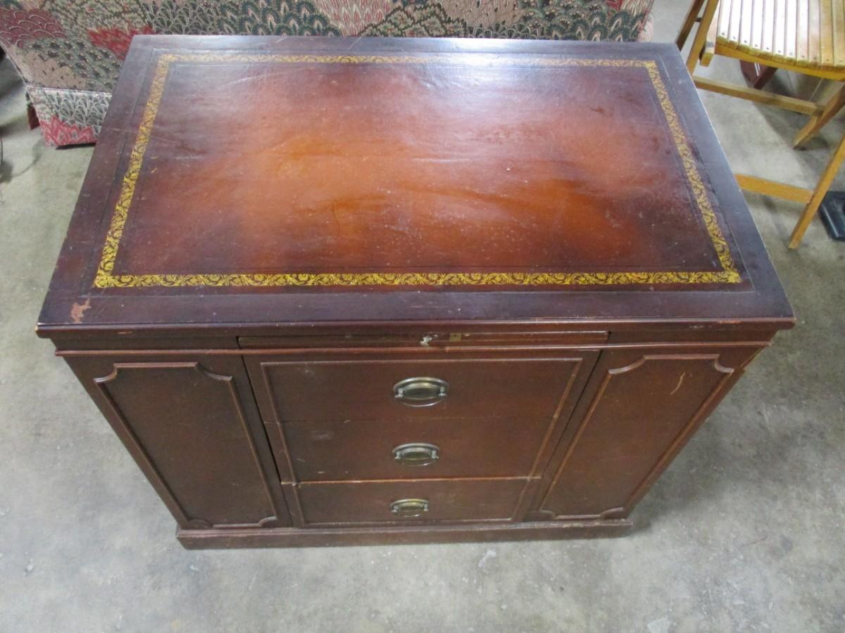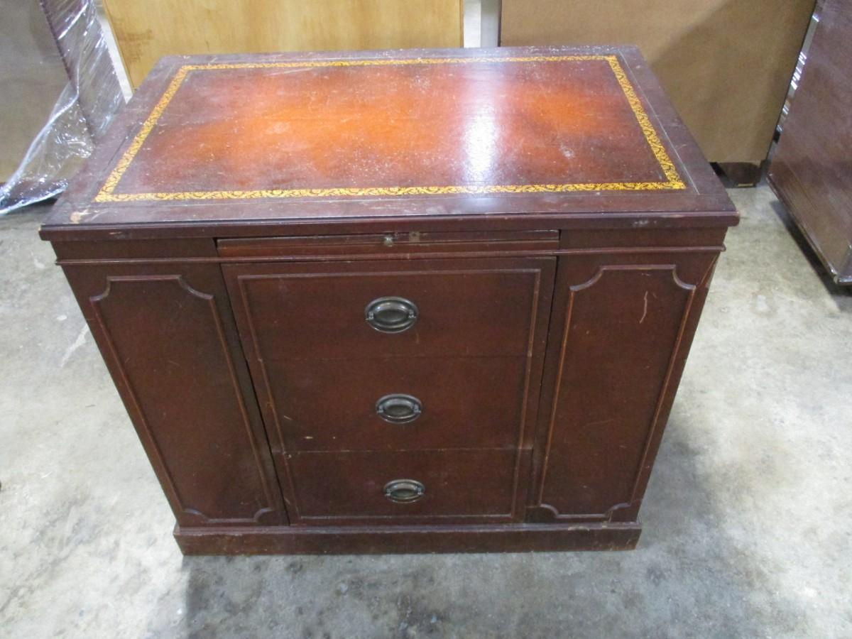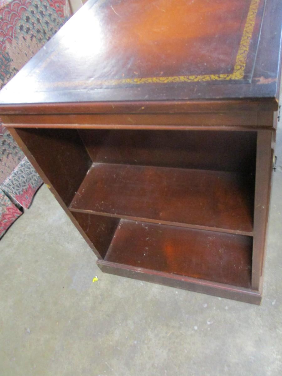 3 Drawer  Lawyer Writing Office Desk With Shelving On The Side 2 Of 2 -  Desk has leather top with gold embossing