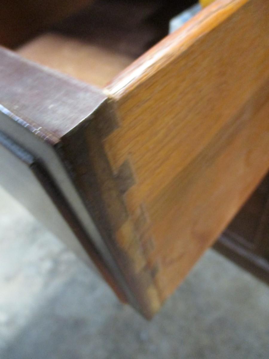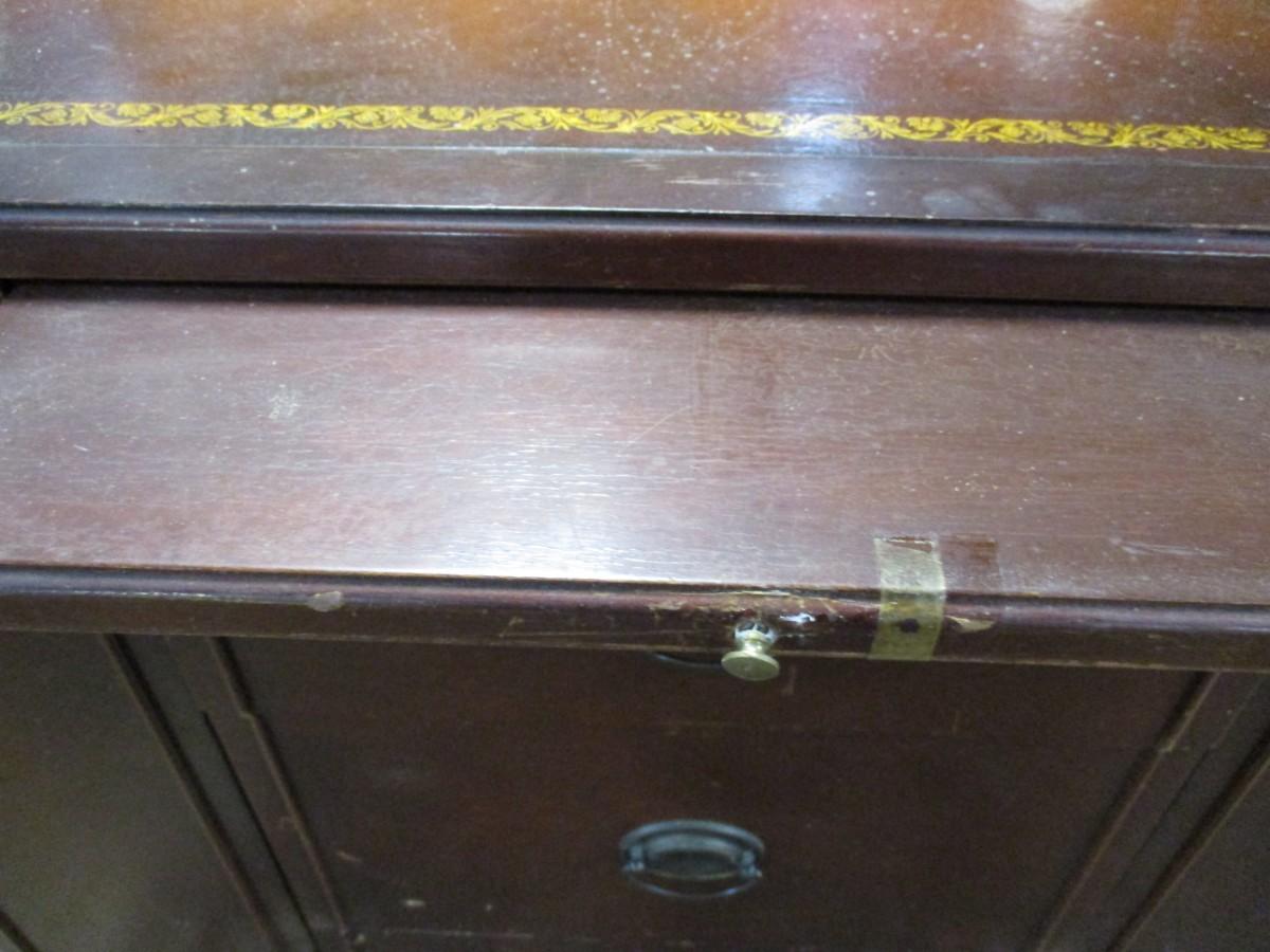3 Drawer Lawyer Writing Office Desk With Shelving On The Side 2 Of 2 - Desk has leather top with gold embossing