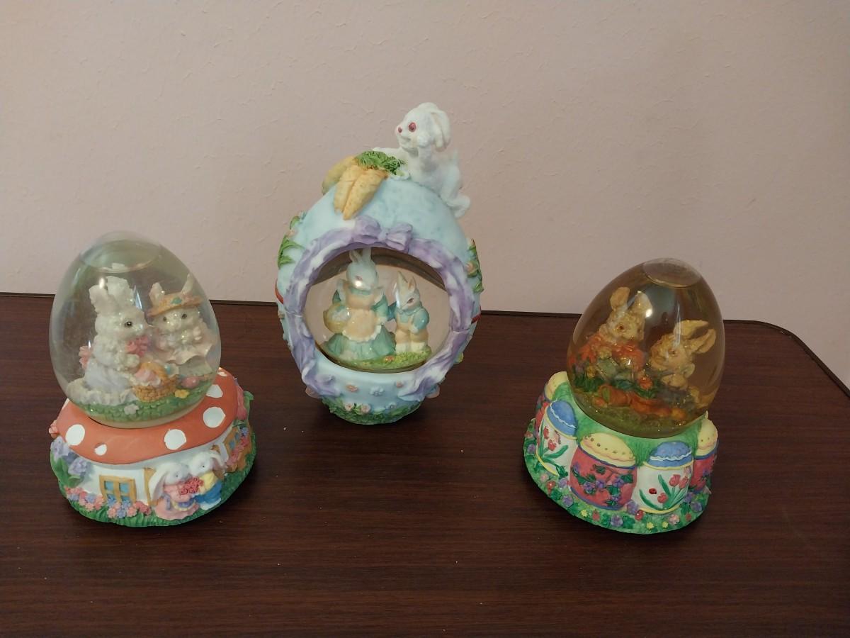 3 EASTER THEMED SNOW GLOBES, 2 MUSICAL