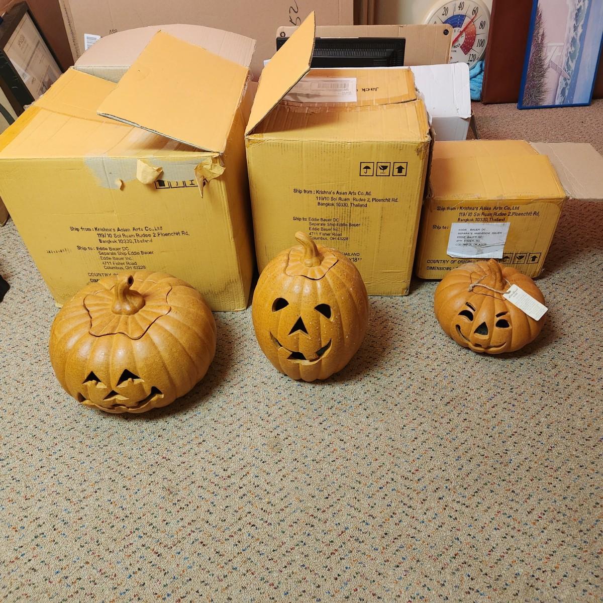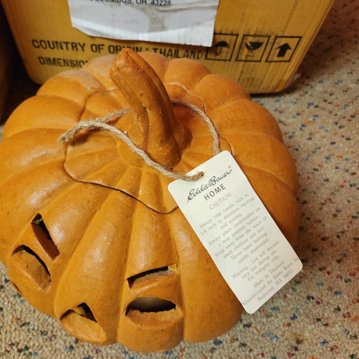 3 Eddie Bauer Home Luminaries Terracotta Halloween Pumpkins