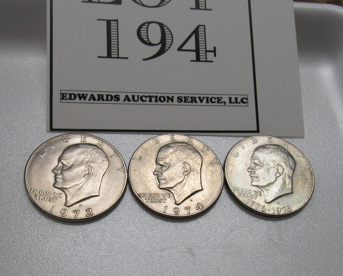 3 Eisenhauer Dollar Coins