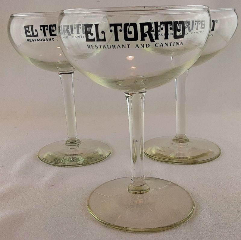 Fun stemware from El Torito measuring 6in. t5all and 4in diameter.