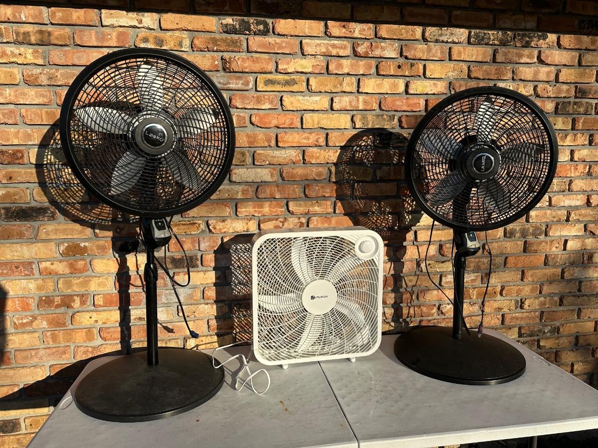 • (2) Lasko pedestal fans – adjustable height, oscillation, multi-speed