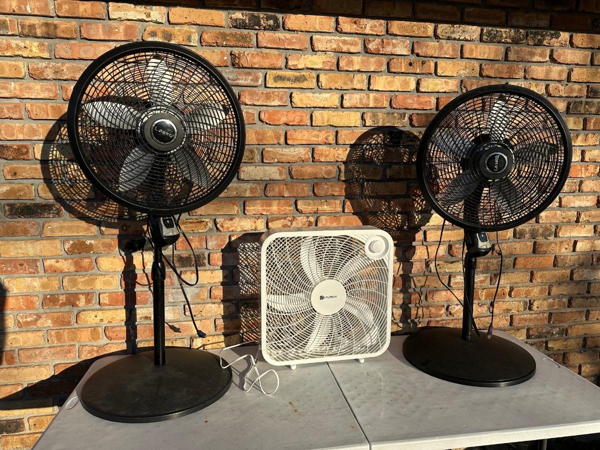 3) Electric Fans – (2) Lasko Pedestal Fans + (1) Utilitech Box Fan – All Working