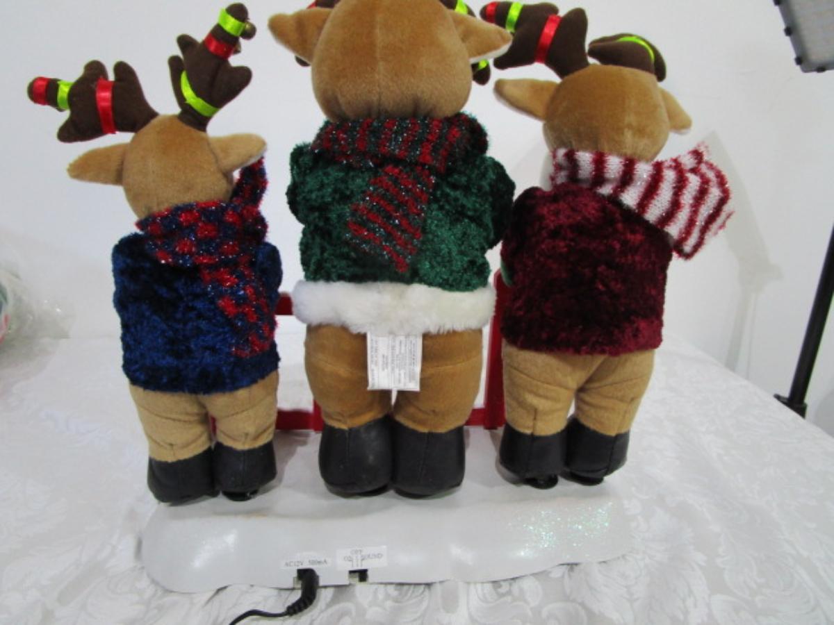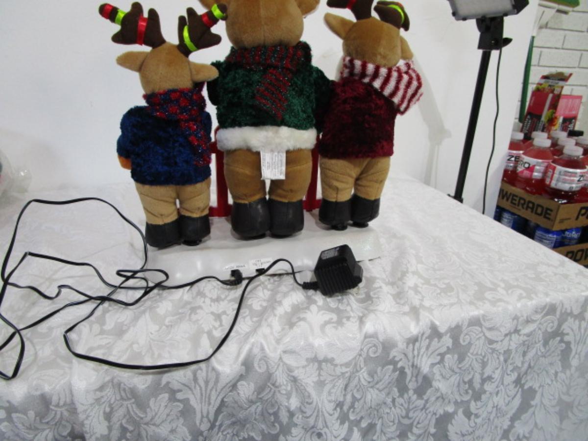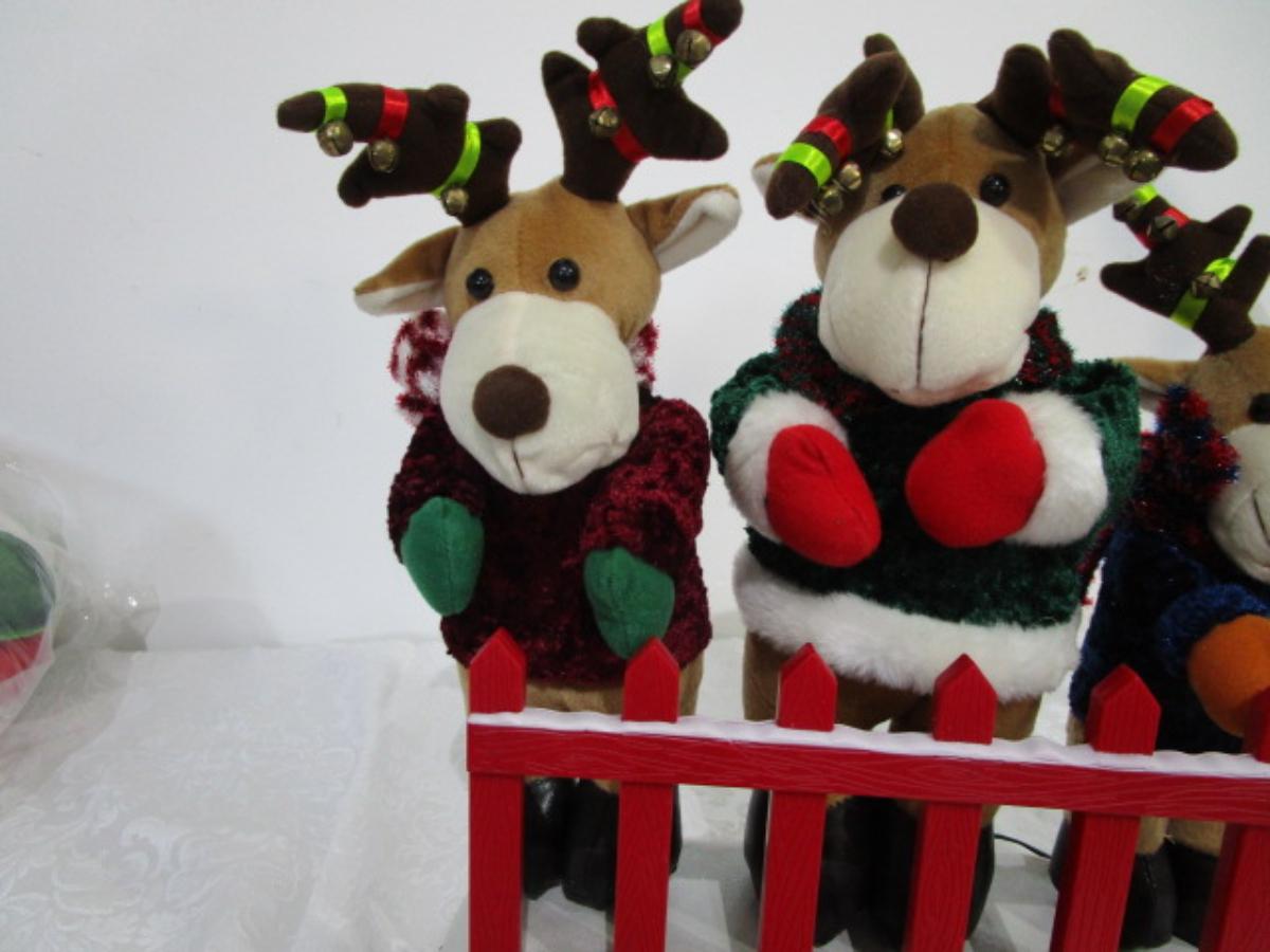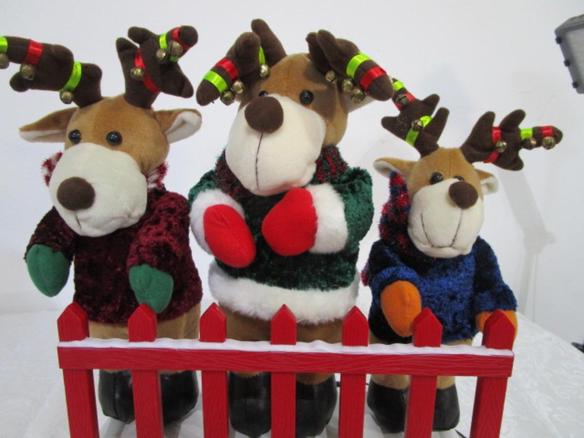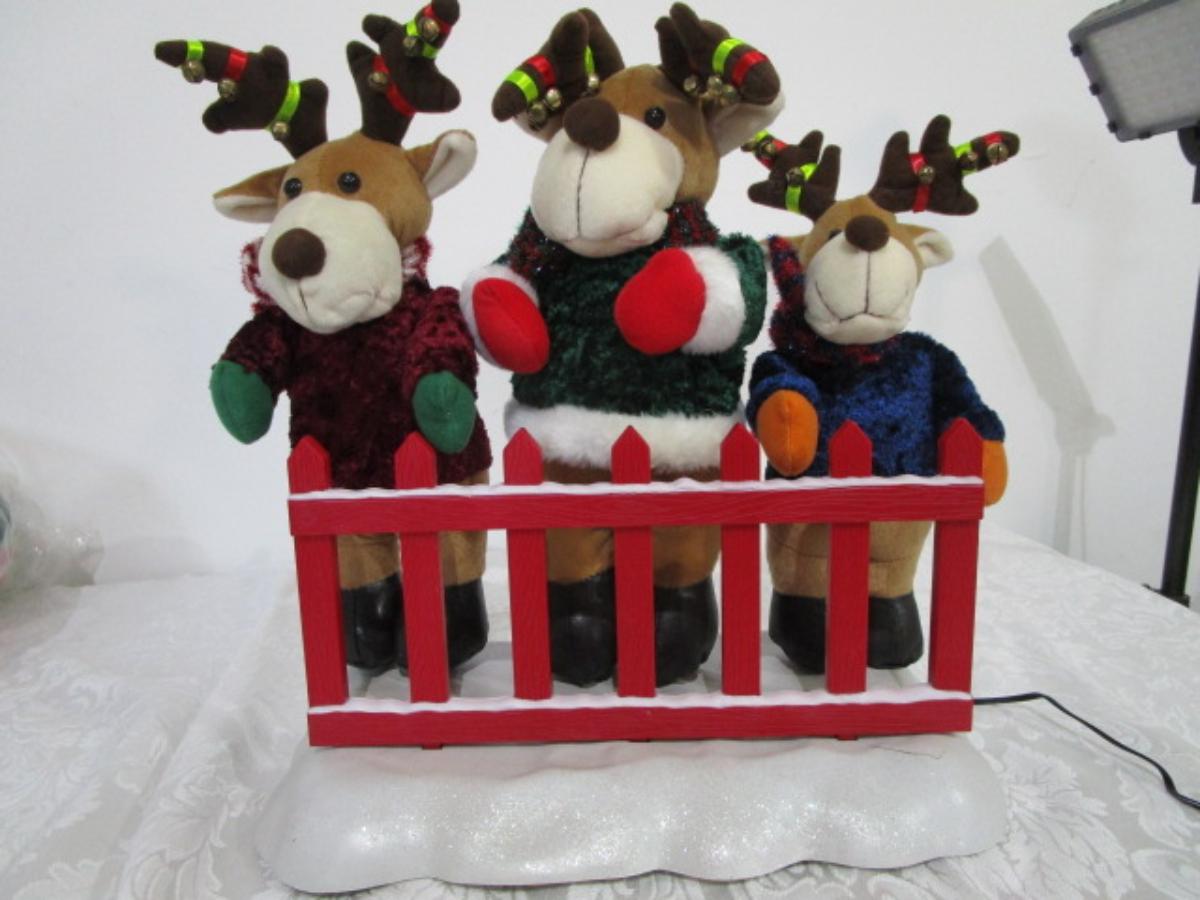 Plays "Up on the Housetop", includes cord and fence reindeer are 12" tall, E