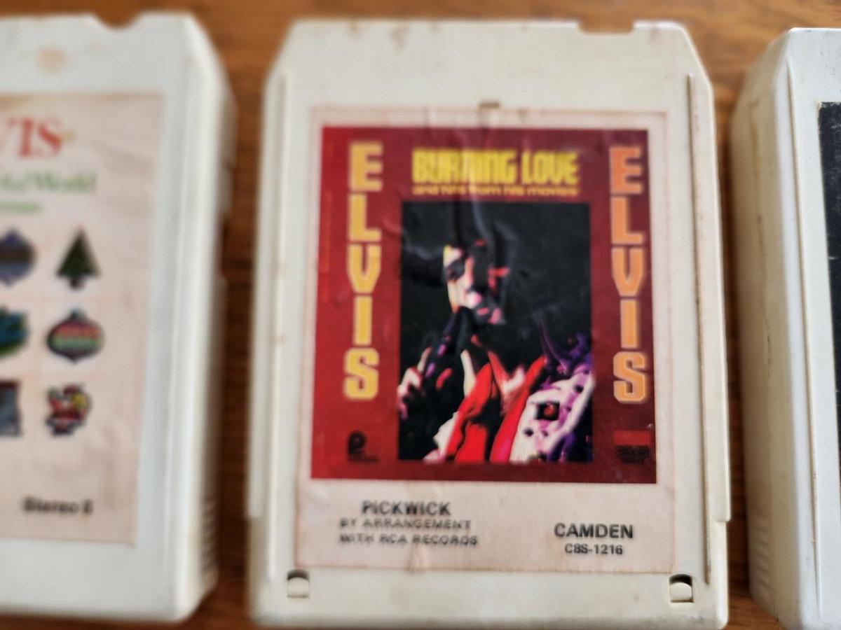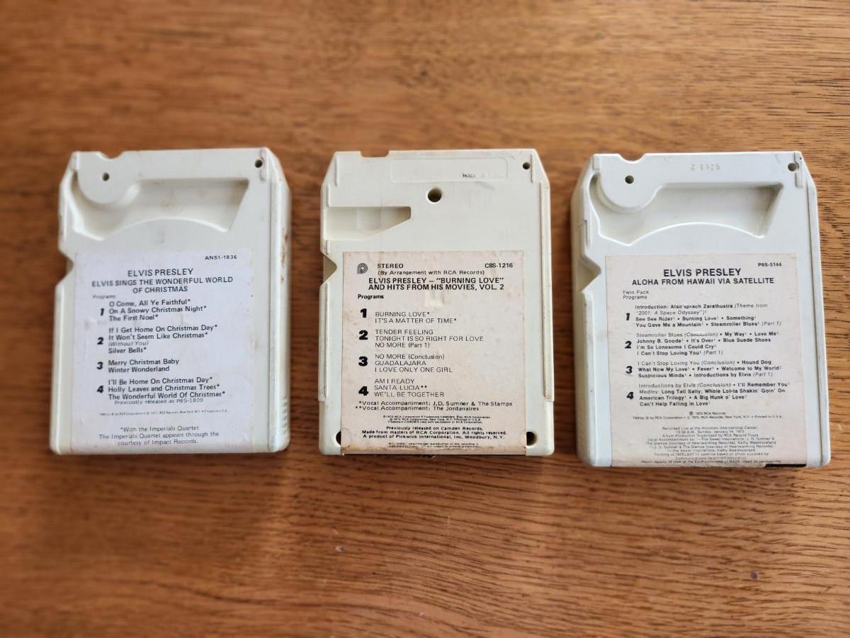 This auction lot is for 3 Elvis 8-Track Tapes. Elvis has definitely not left the building as these tapes will disclose. We have not tested these tapes but whatever - they are quite the nifty find. Great for display or use - if you have a player.