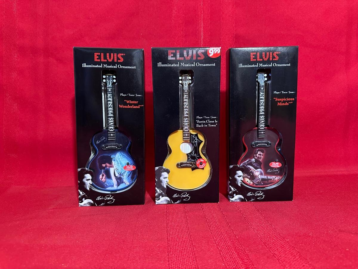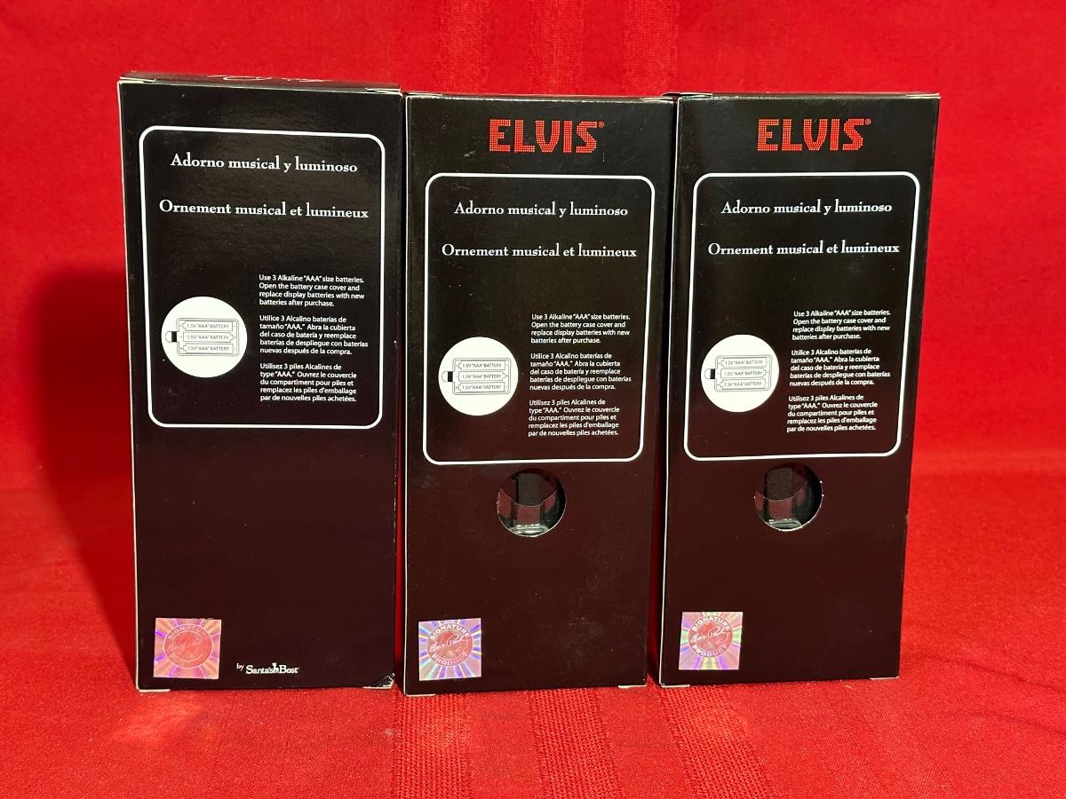 3 ELVIS ILLUMINATED MUSICAL ORNAMENTS