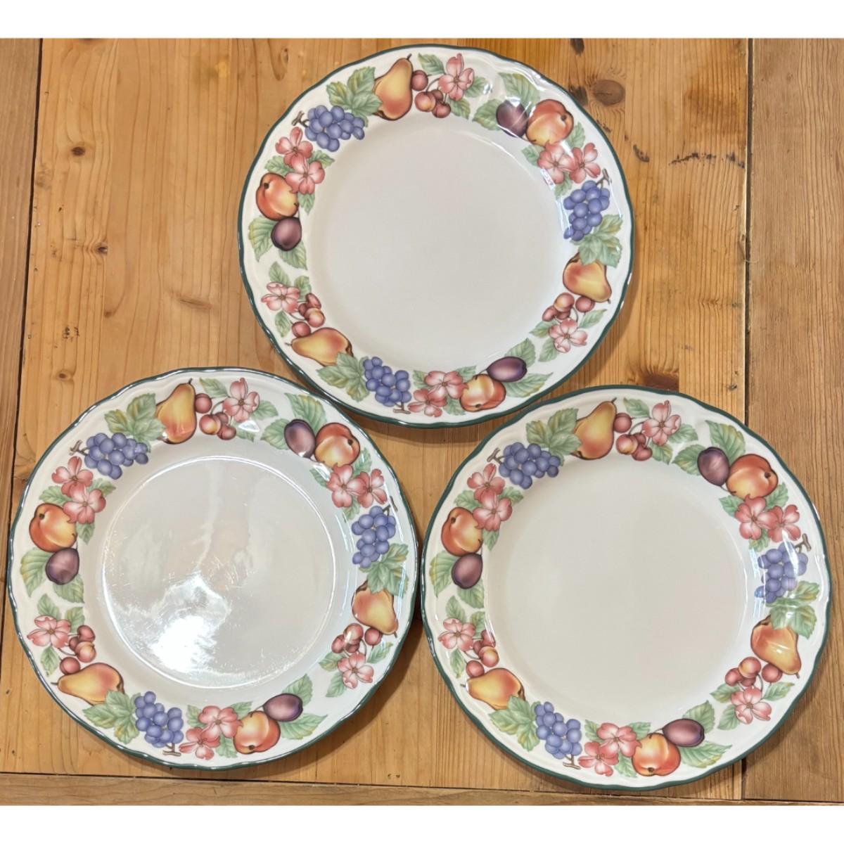 3 Epoch Collection Market Day E801 Dinner Plates Fruit Grapes Pears Floral