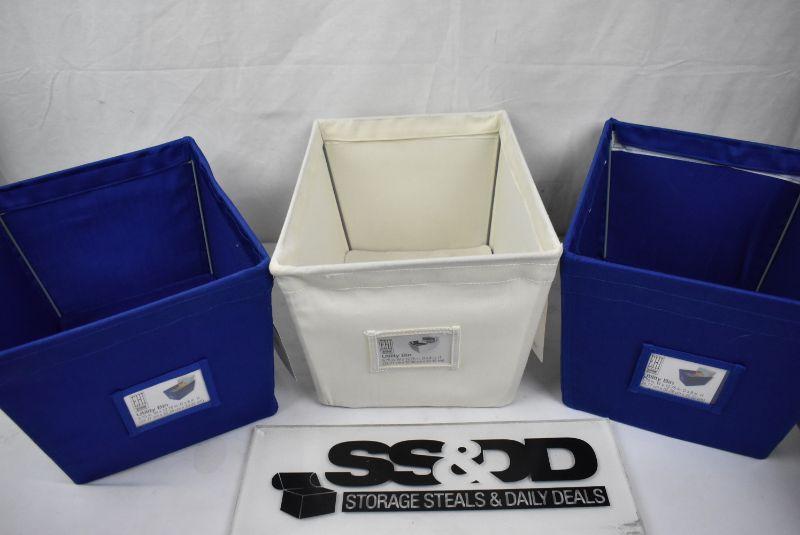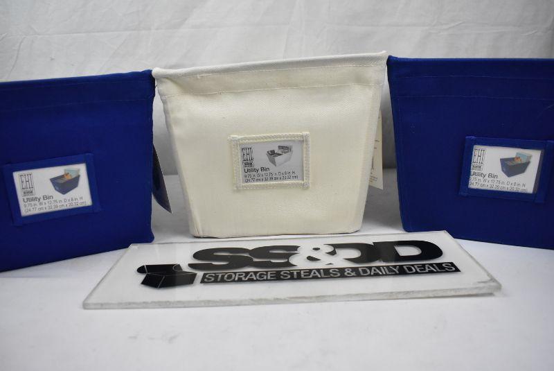3 Fabric Utility Bins: 2 Blue 1 Cream, 9.75"x12.75"x8" - New