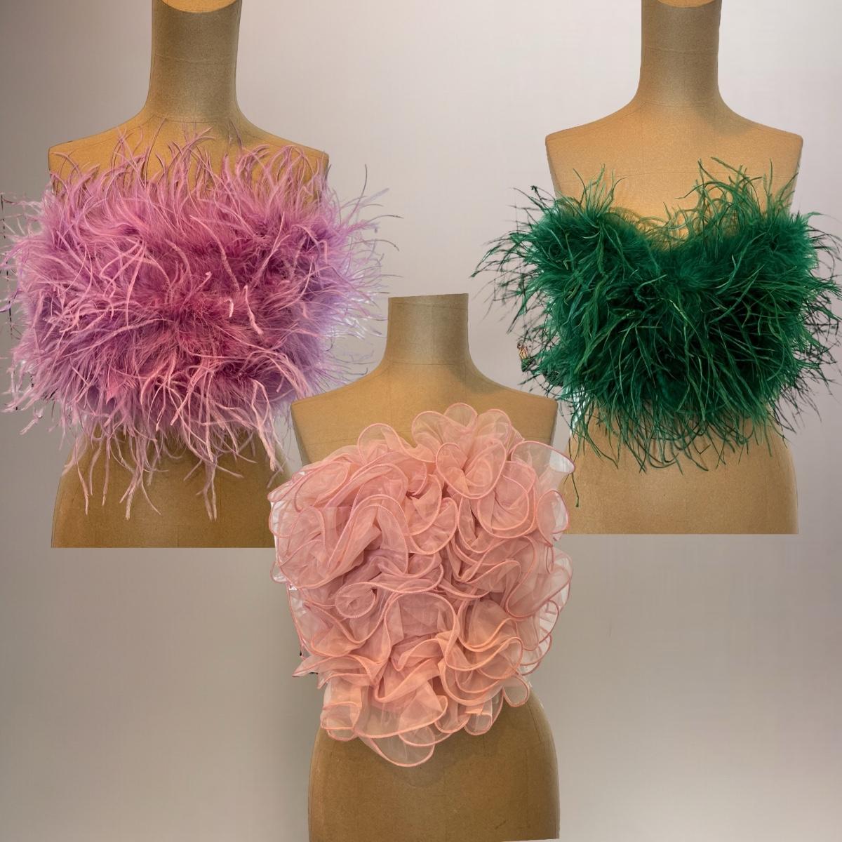 3 Fabulous Corset Tops - Marabou Feathers, Organza Sz 6