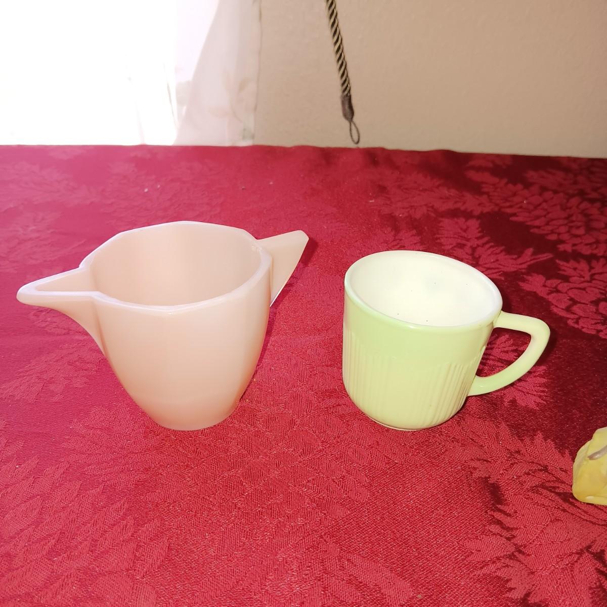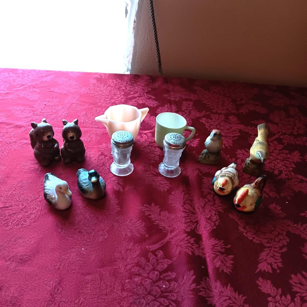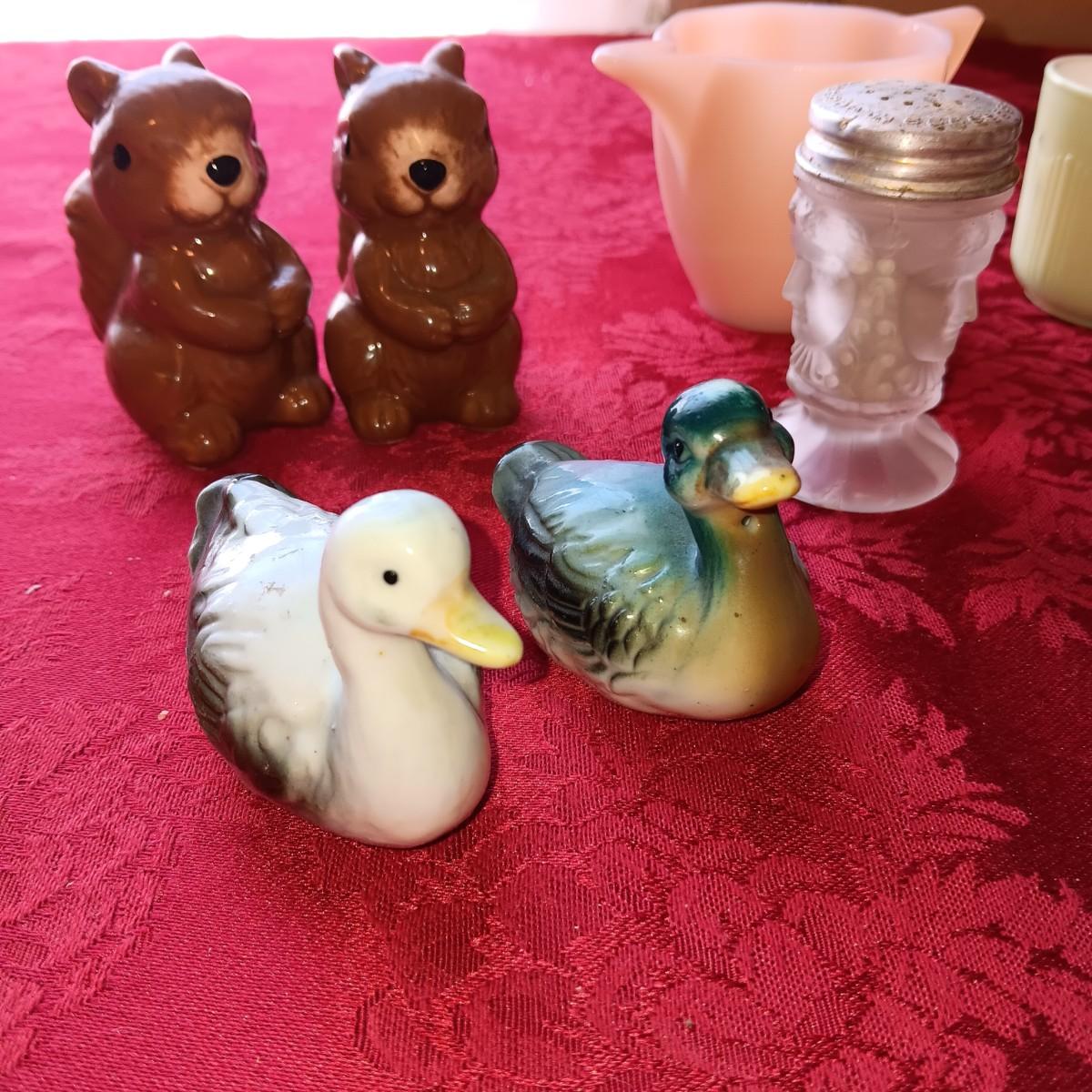 3 FACE SATIN GLASS SHAKERS PLUS OTHER VINTAGE SHAKERS