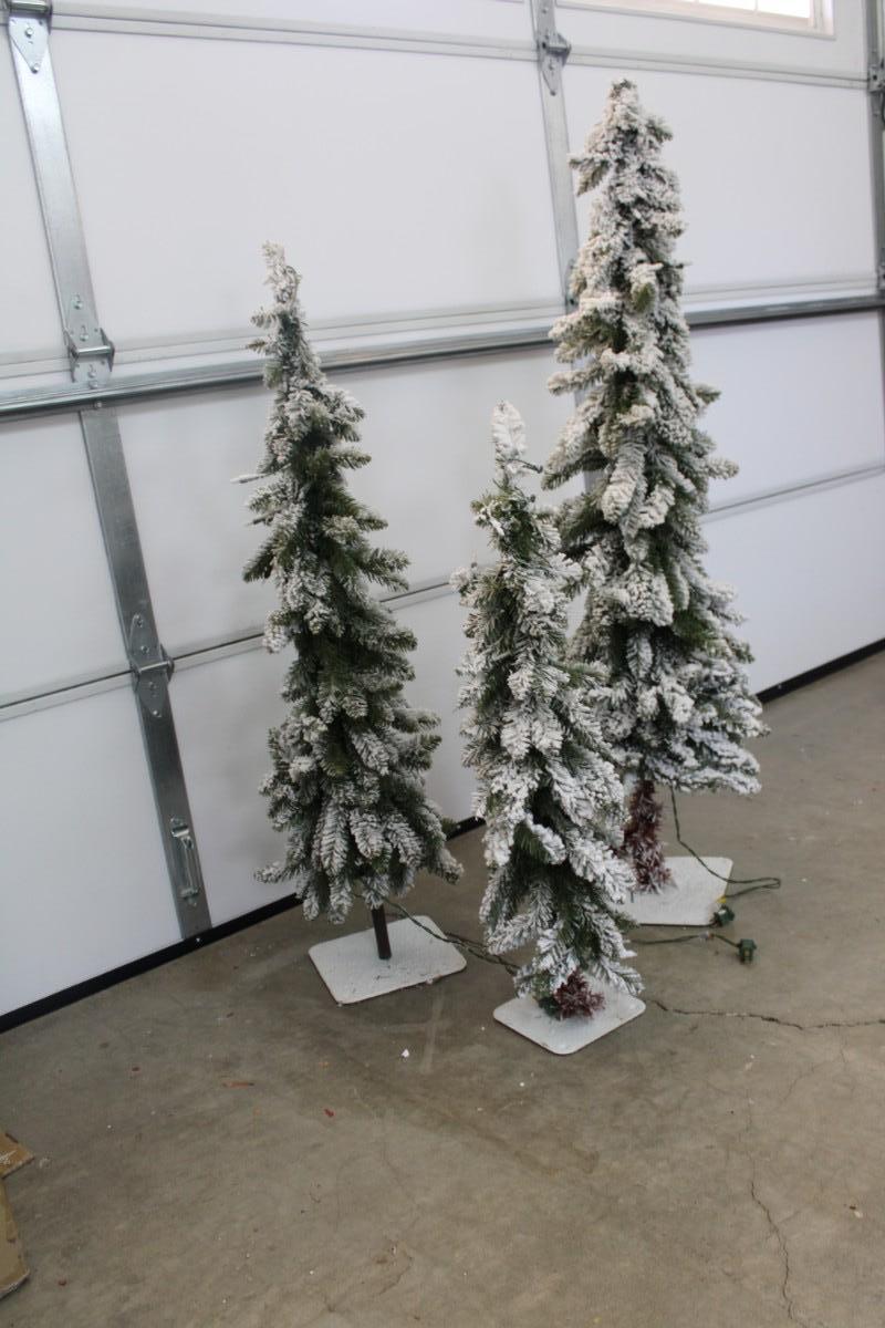 Five Trees - Three Fake Flocked Christmas Trees (Pre-Lit) and Two New 30" PVC Tree (Unlit)