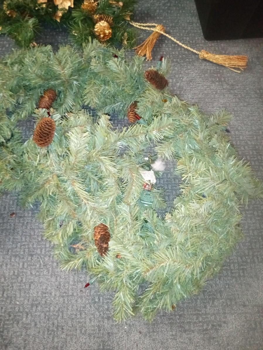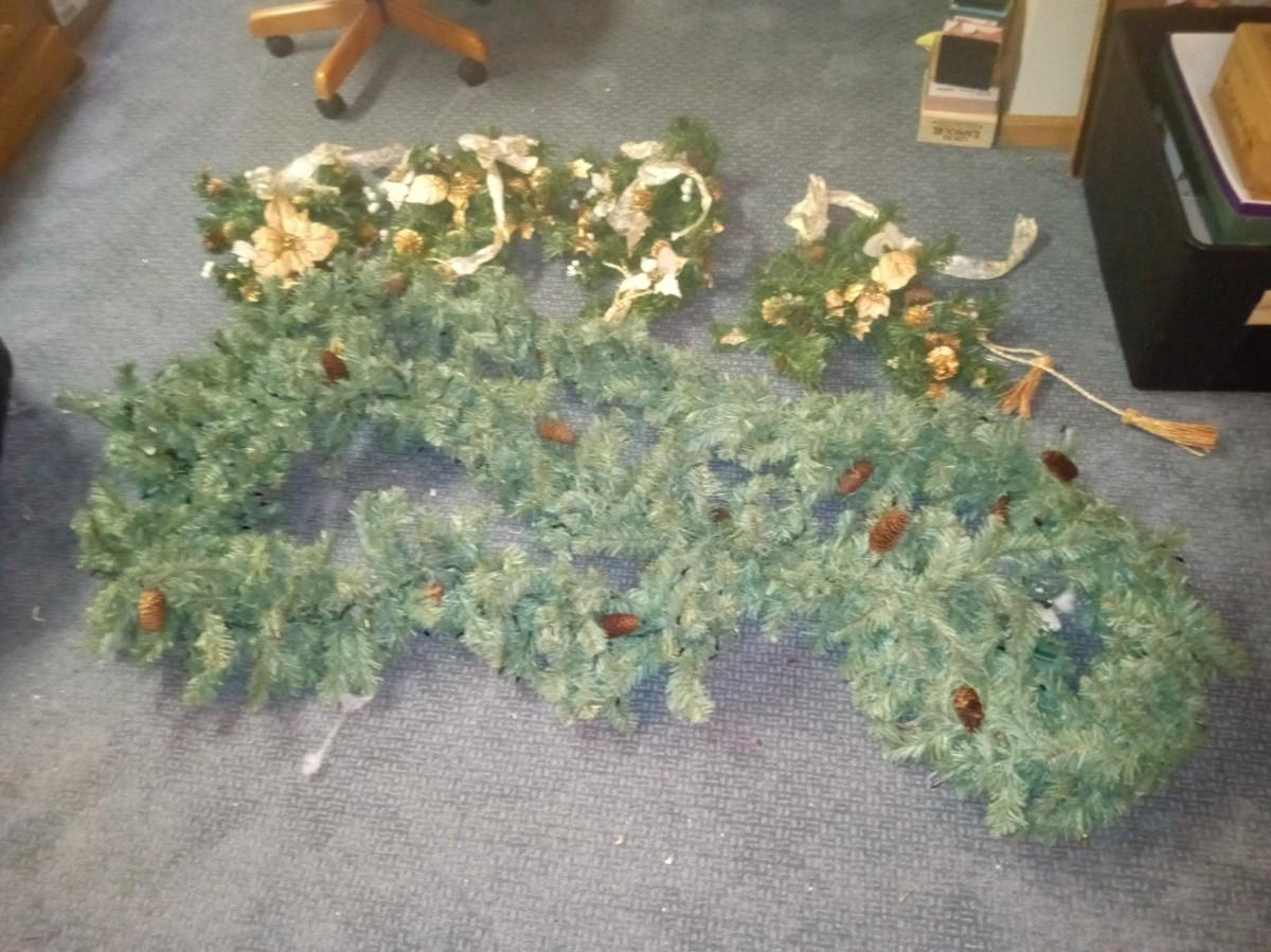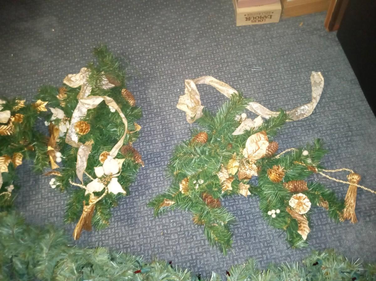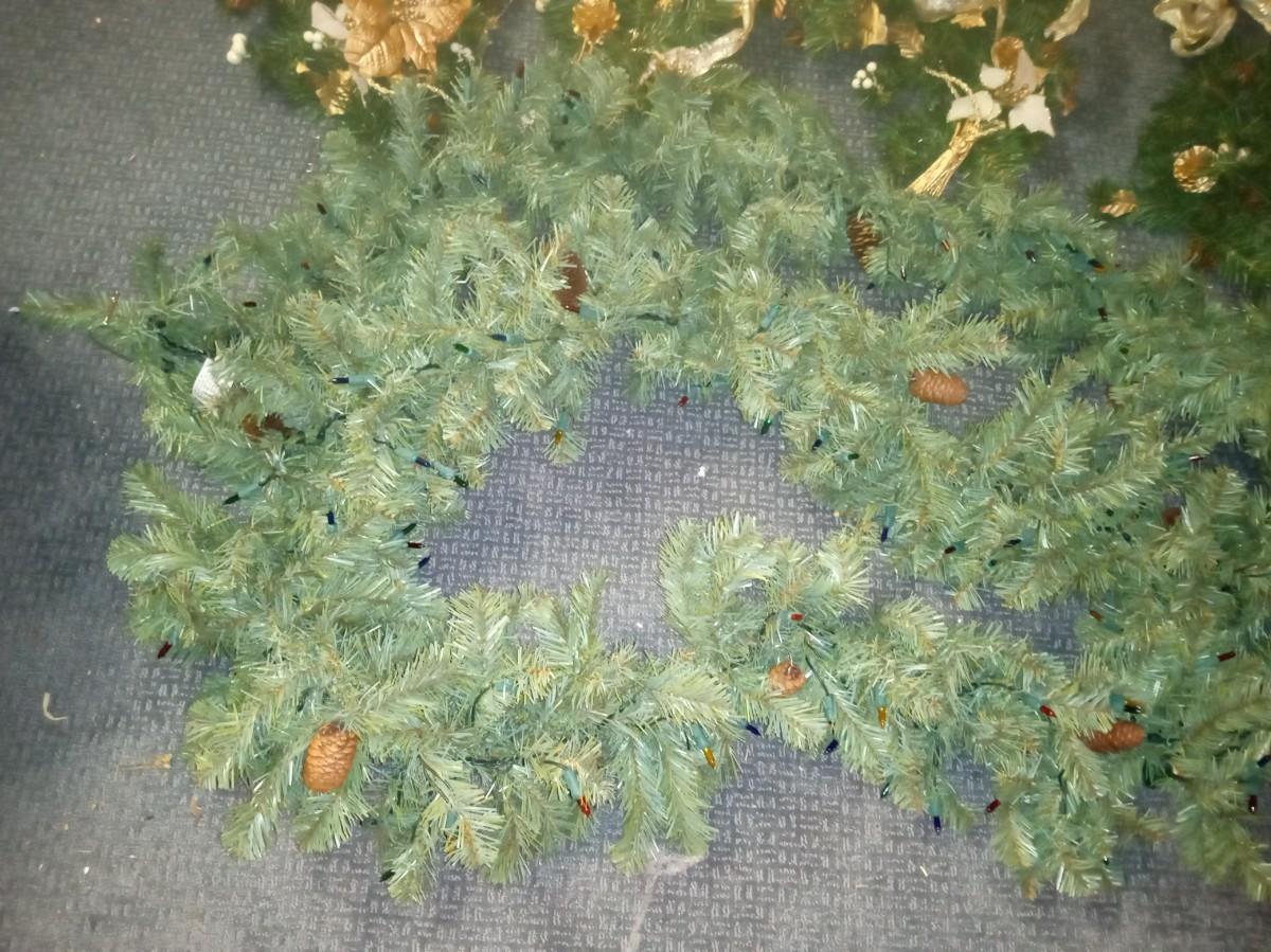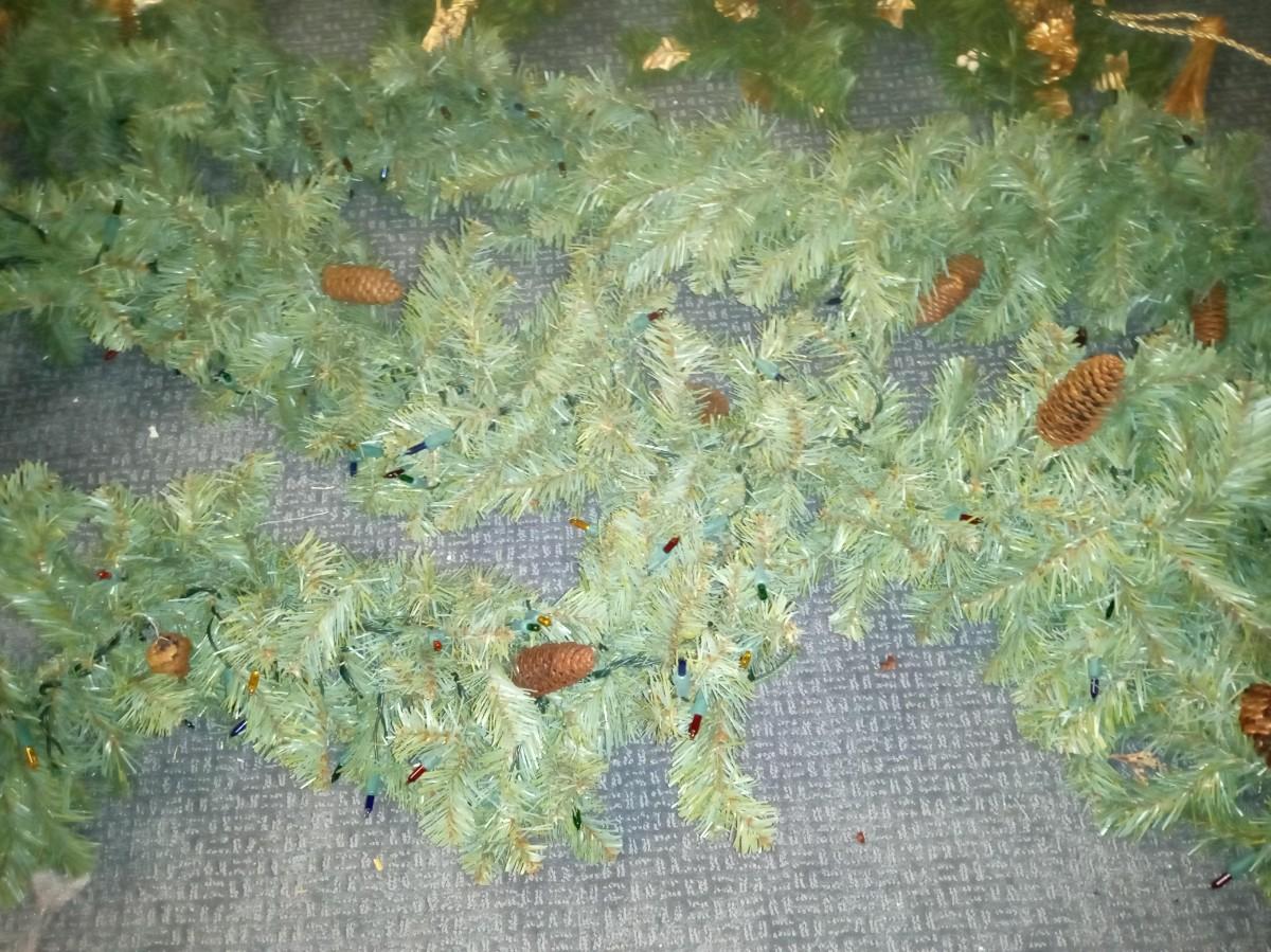 3 FAUX EVERGREEN GARLANDS WITH LIGHTS AND PINECONES